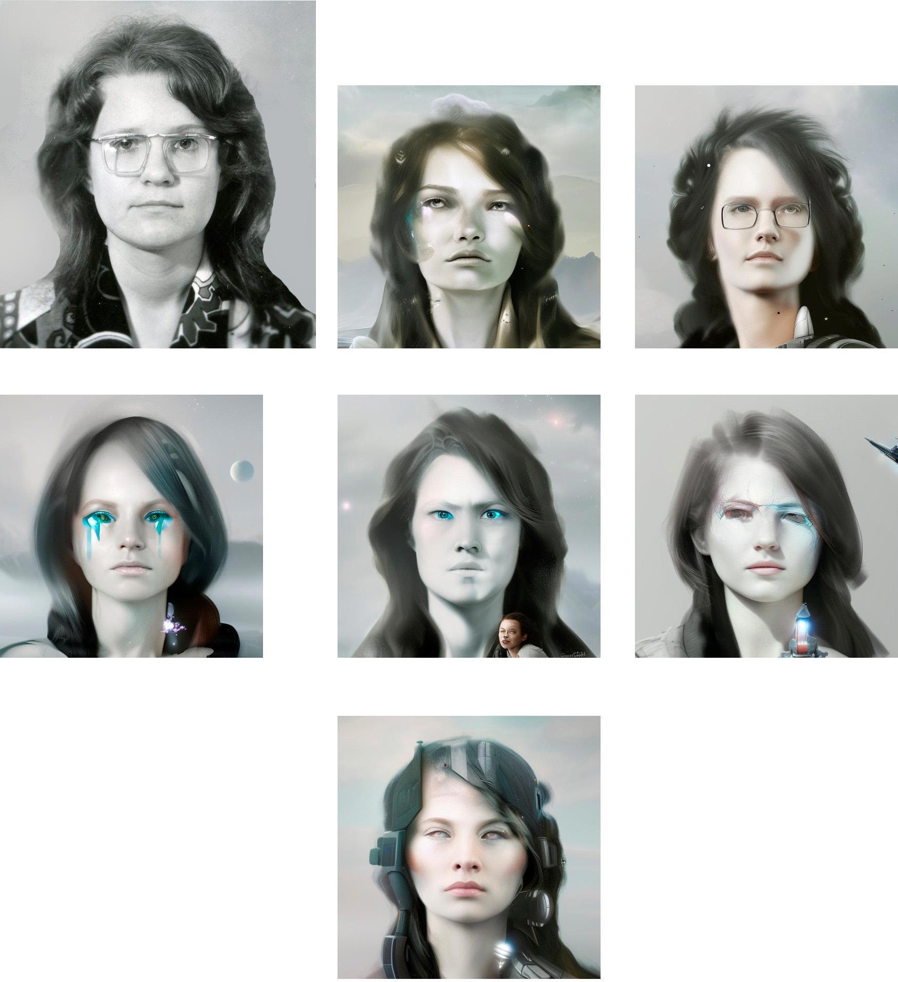 К сожалению, мое фото в более взрослом возрасте гадская нейросеть интерпретировала очень обидно. Изобразила меня этакой сильно-пожилой библиотекаршей в пучком на затылке (отродясь такой прически не носила).