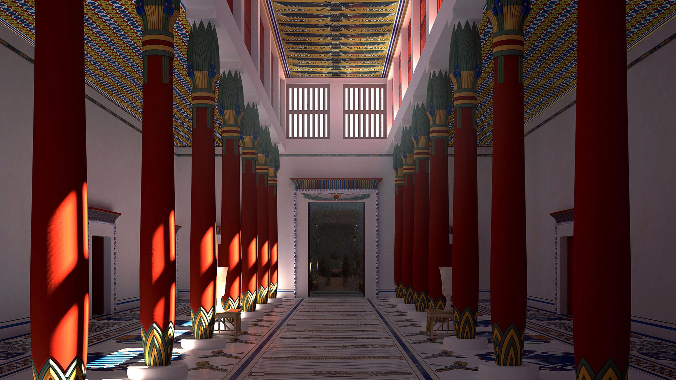 Интерьер дворца царя Небмаатра Малката (на самом деле это арабское название, которое в переводе означает "Место, где находят вещи"). Реконструкция специалистов Metropolitan Museum of Art на основе результатов раскопок. Нью-Йорк.