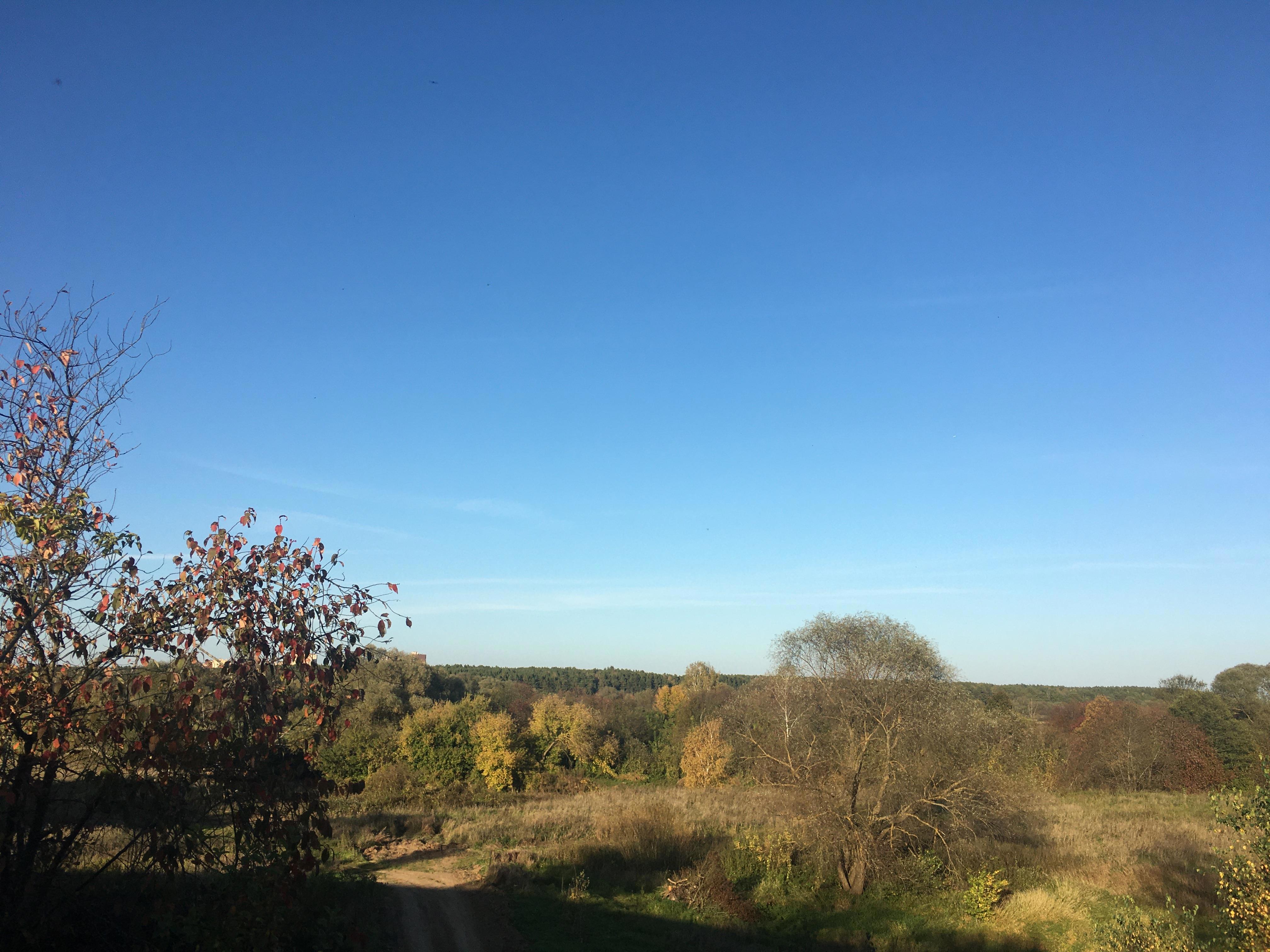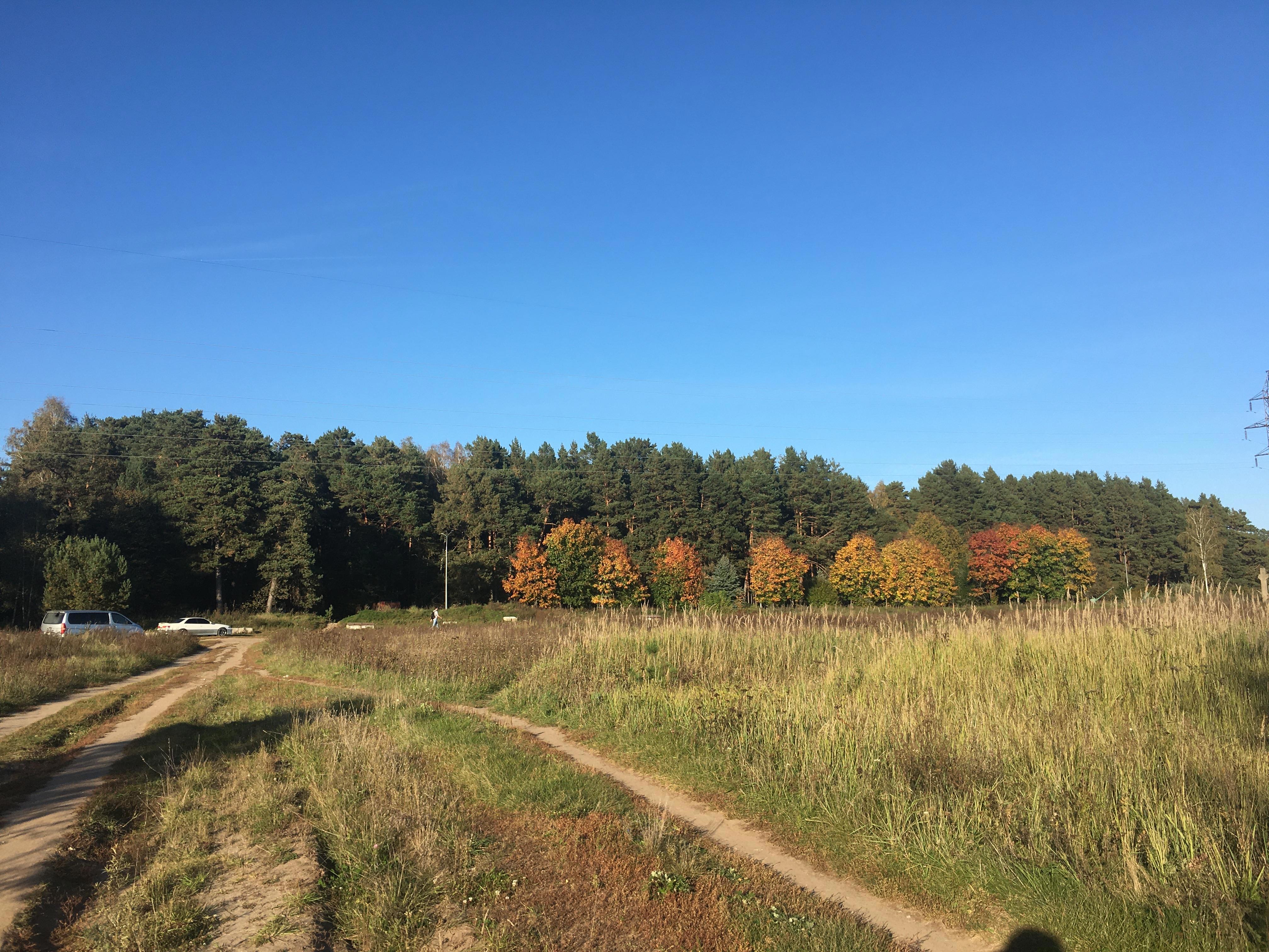 Кстати, кому интересна локация — это южная граница обороны Москвы. Вот тут, чуть левее и за холмиком спрятался соответствующий памятник. Там, куда уходит дорога, правее машинки: