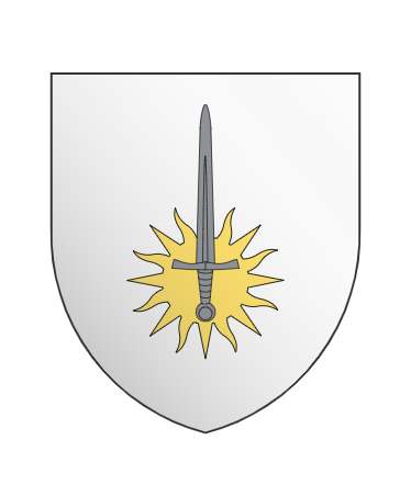 Греб ордена - серебряный меч на белом фоне, гарда которого обрамлена солнечным кругом, а острие клинка направлено в небо.