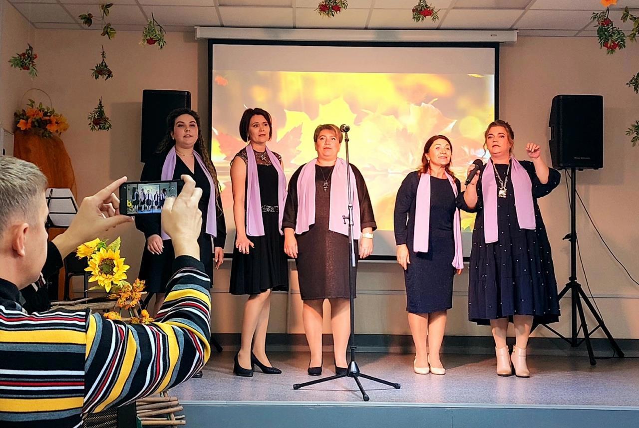 Вокальная группа работников детского сада борется в вокальном конкурсе...