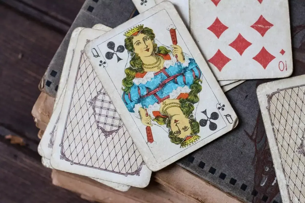 Дама червей — Елена Троянская, дама пик — Афина, богиня войны, дама бубен — библейская Рахиль, а дама треф — собирательный образ, означающий хитрость и женское коварство.