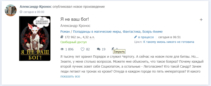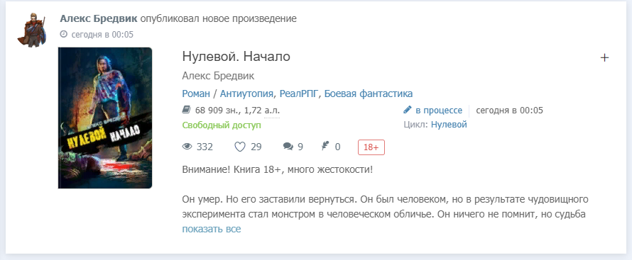 Итак, сегодня ночью состоялся старт публикации новой книги в жанре ЛитРПГ!