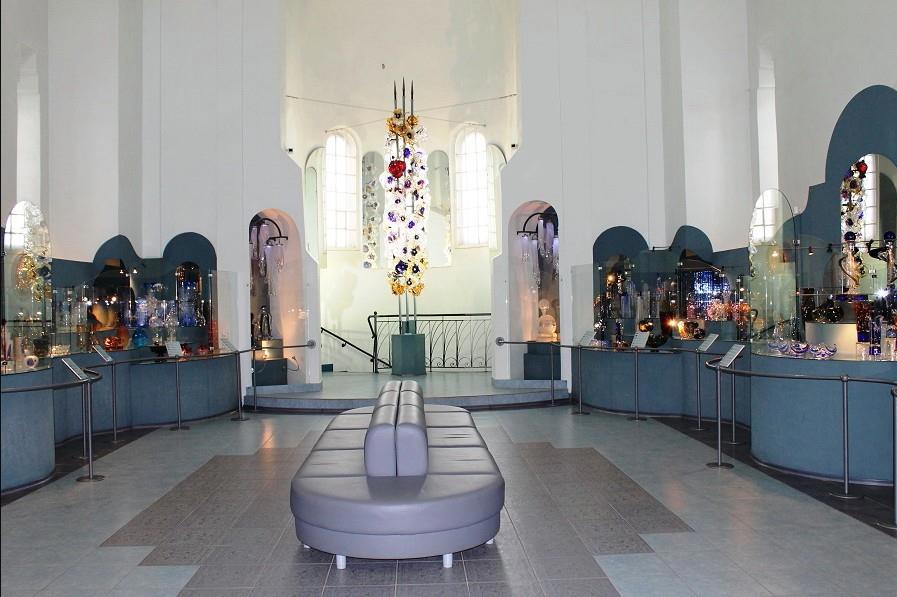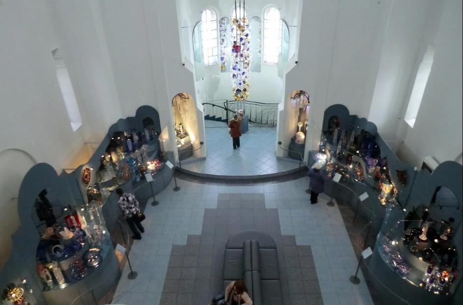 В просторном помещении экспонируется стекло, датируемое периодом от 1918 года до наших дней.