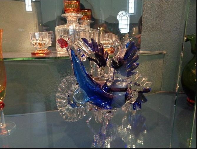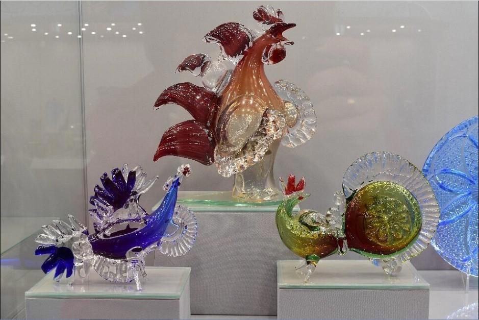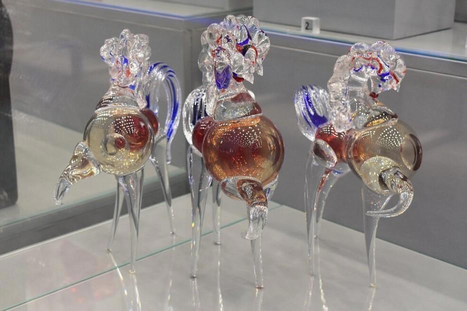 Яркий акцент в коллекции Музея хрусталя во Владимире — был так же сделан на скульптурах из стекла, выполненных в гутной технике. К ним относились сказочные птицы, драконы и кони.
