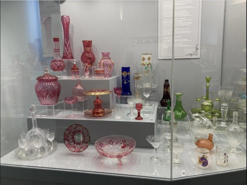 В экспозиции Музея представлены около 1000 образцов из стекла и хрусталя и около 100 тончайших работ из фарфора.