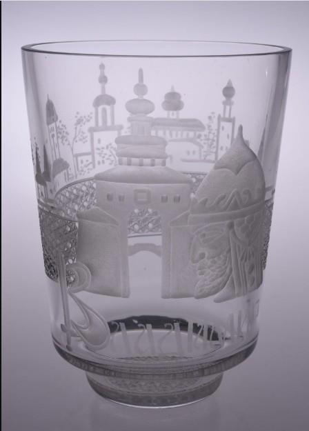 Потешные сосуды. Конец ХIХ – начало ХХ в. Стекло бесцветное и цветное, техника гутная, гильоширное травление, «механическая нить»