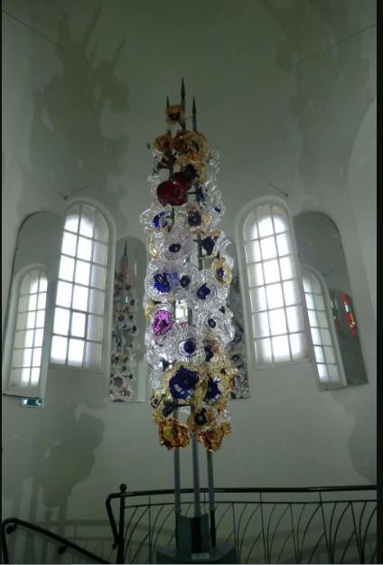Для начала, в самом центре зала возвышался королевский венец всей экспозиции – яркая стекольная инсталляция «Воспоминание о Венеции», созданная в 1972 году.
