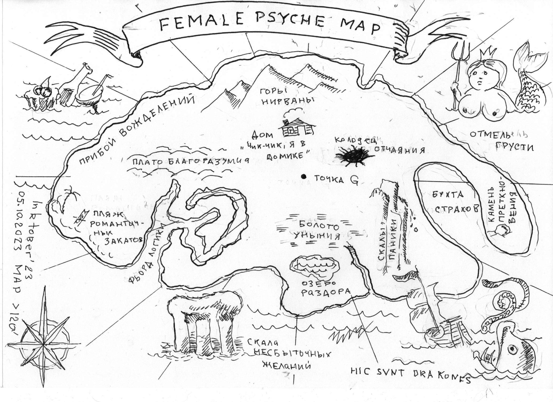 А вторая карта - карта женской психики. Почему? Потому что нарисовать на плоскости карту женской логики, как мне кажется невозможно. :)