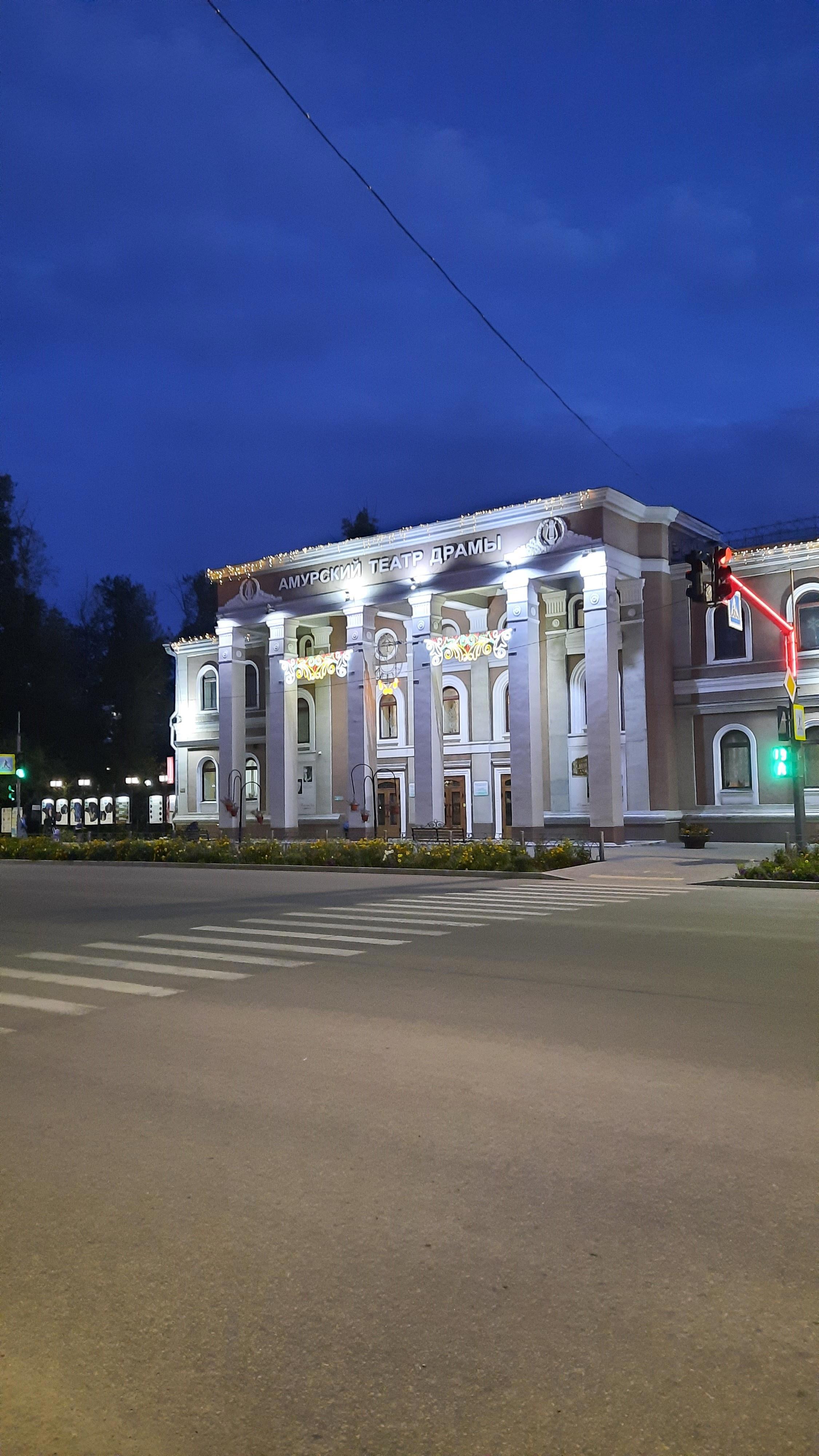12.09.23 Амурский театр драмы в вечерней подсветке.