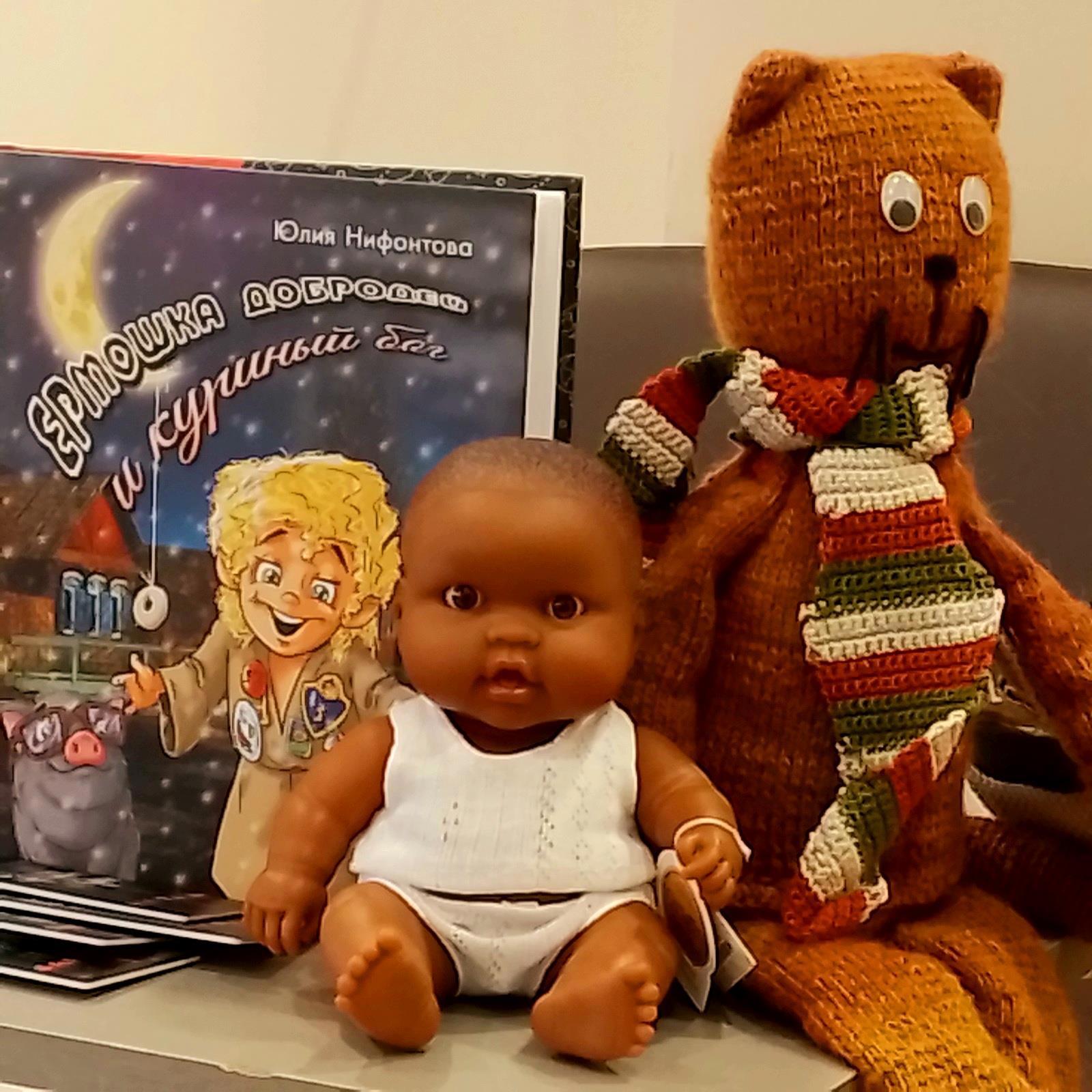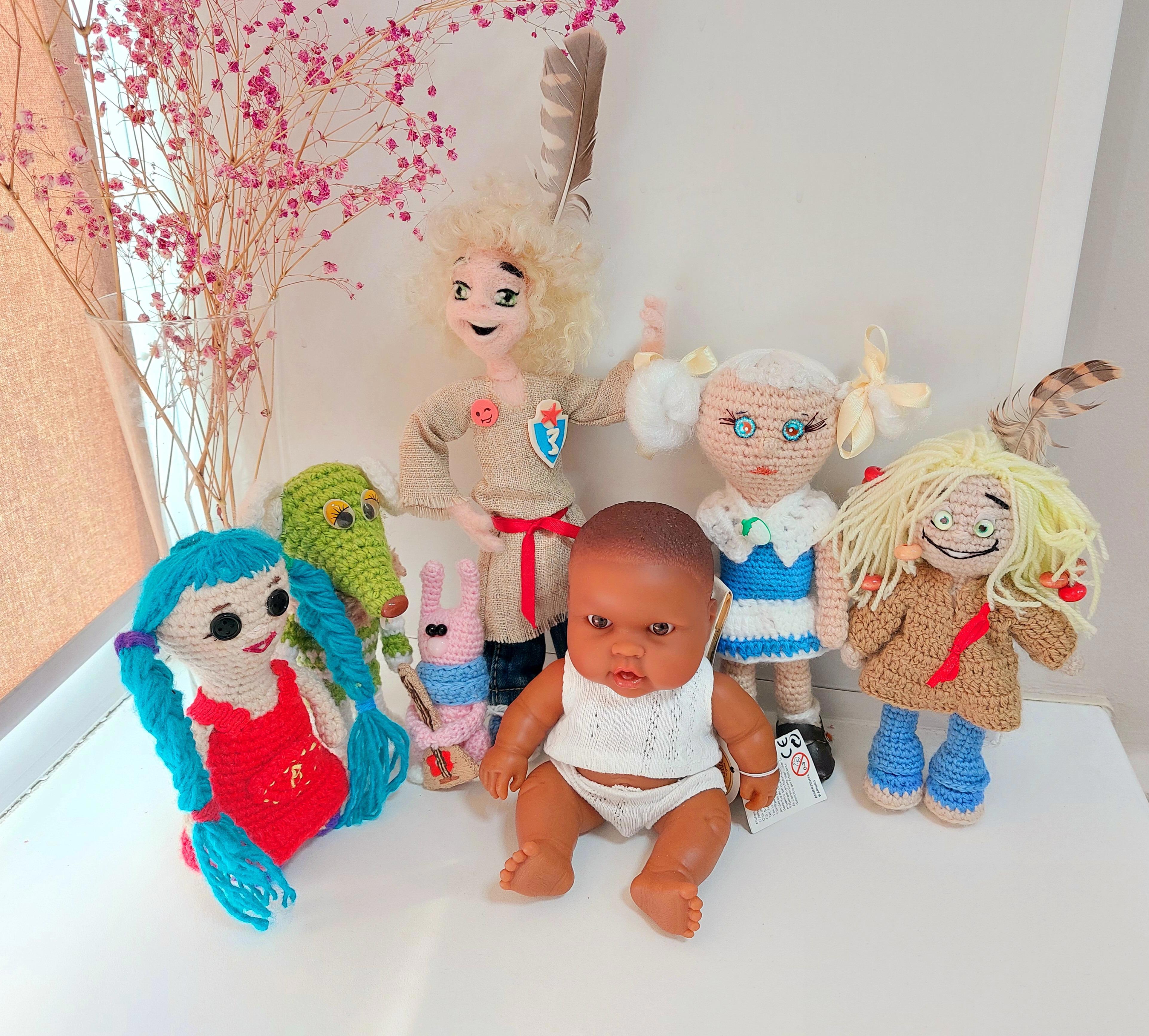 Все эти персонажи сделаны (связаны крючком, сваляны из войлока) руками моих читателей и их добрых мам, бабушек (среди мастериц есть библиотекари и даже редакторы!), которые тоже читали сказки про домовёнка Ермошку и его друзей. Нынче весёлая компания пополнилась ещё одним героем сказки – скромным, робким и нежным пупсёнком СЭММИ!!!