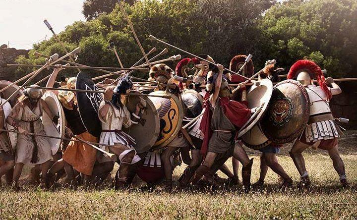 3. Ну, раз уж автор той статьи не уделил много внимания этому вопросу, то и я не буду. Просто скажу, что античное или раннесредневековое пехотное копьё как правило не такое уж и длинное, плюс-минус 2-2.5 метра. А относительно скромный вес позволял удерживать его практически за любую часть древка. Таким образом, меняя хват, им можно было колоть врага как в радиусе полной длины древка плюс ещё чуточку, так и сойдясь практически щит-в-щит. Да, с тяжеленной пятиметровой пикой такое уже не пройдёт — но и прорваться сквозь лес этих пик, чтобы подойти в упор, намного сложнее.