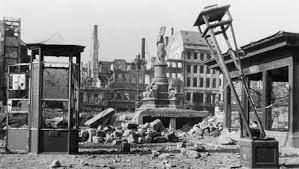 А это февраль 1945 года - сжигают трупы горожан. Как я понял - эти горожане думали спастись от пожаров на площади - но в доменной печи размером с город нет безопасных мест. Те, кто пытались спастись в бетонных пожарных бассейнах - банально сварились. Сквозные тоннели через несколько подвалов - как средство выбраться при заваленном входе в один - дало сквозный потоки раскаленного воздуха, то есть пламени. По ходу там неудачное инженерное решение (с открытыми отверстиями-ходами между бомбоубежищами) привело к массовой гибели населения в бомбоубежищах. Там где сквозняков не было - В изолированных умерли от удушья - кислород в городе выгорел. Их потом еще долго находили по мере разборки руин. Причем из-за отсутсивия кислорода - они мумифицировались, а не гнили.
