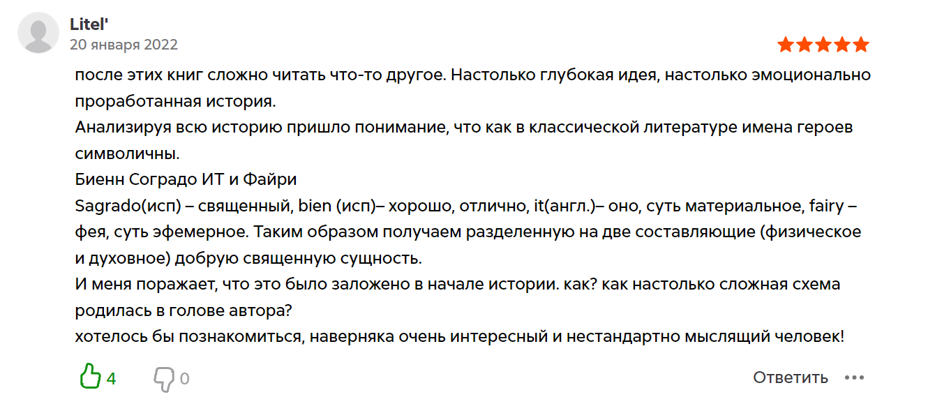 Редко читаю комменты на Л-с, сегодня зашла кое-что посмотреть, и увидела комментарий, который привожу ниже. Читатель нашел одну из главных пасхалок серии, и верно прочел имена. Это очень и очень здорово. Человек сумел увидеть спрятанный символ и его смысл, а это значит, что послание дошло до адресата. Прекрасно.