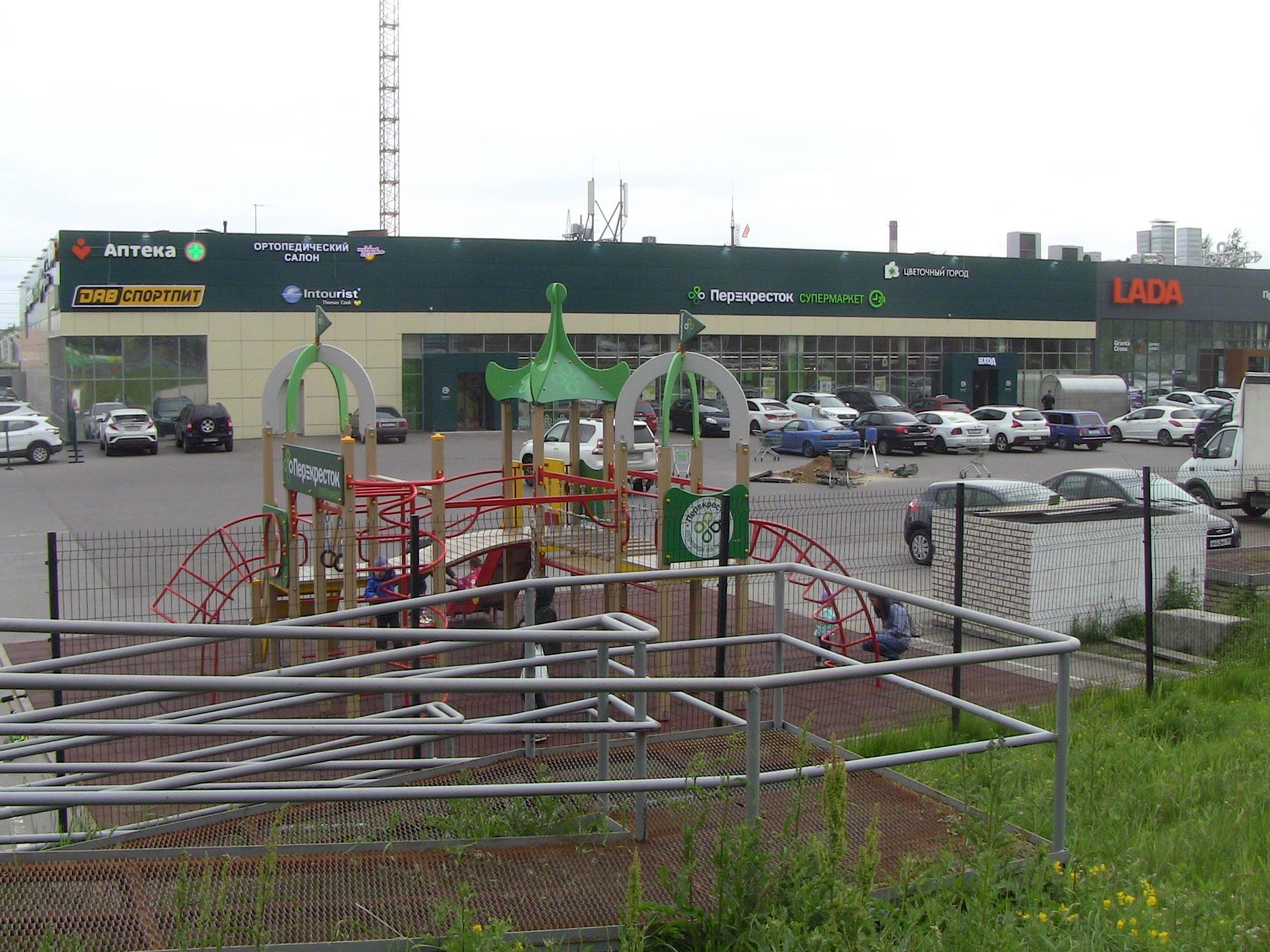 А это супермаркет Перекресток, который появился в 2018 году. Раньше на этом месте была автомойка