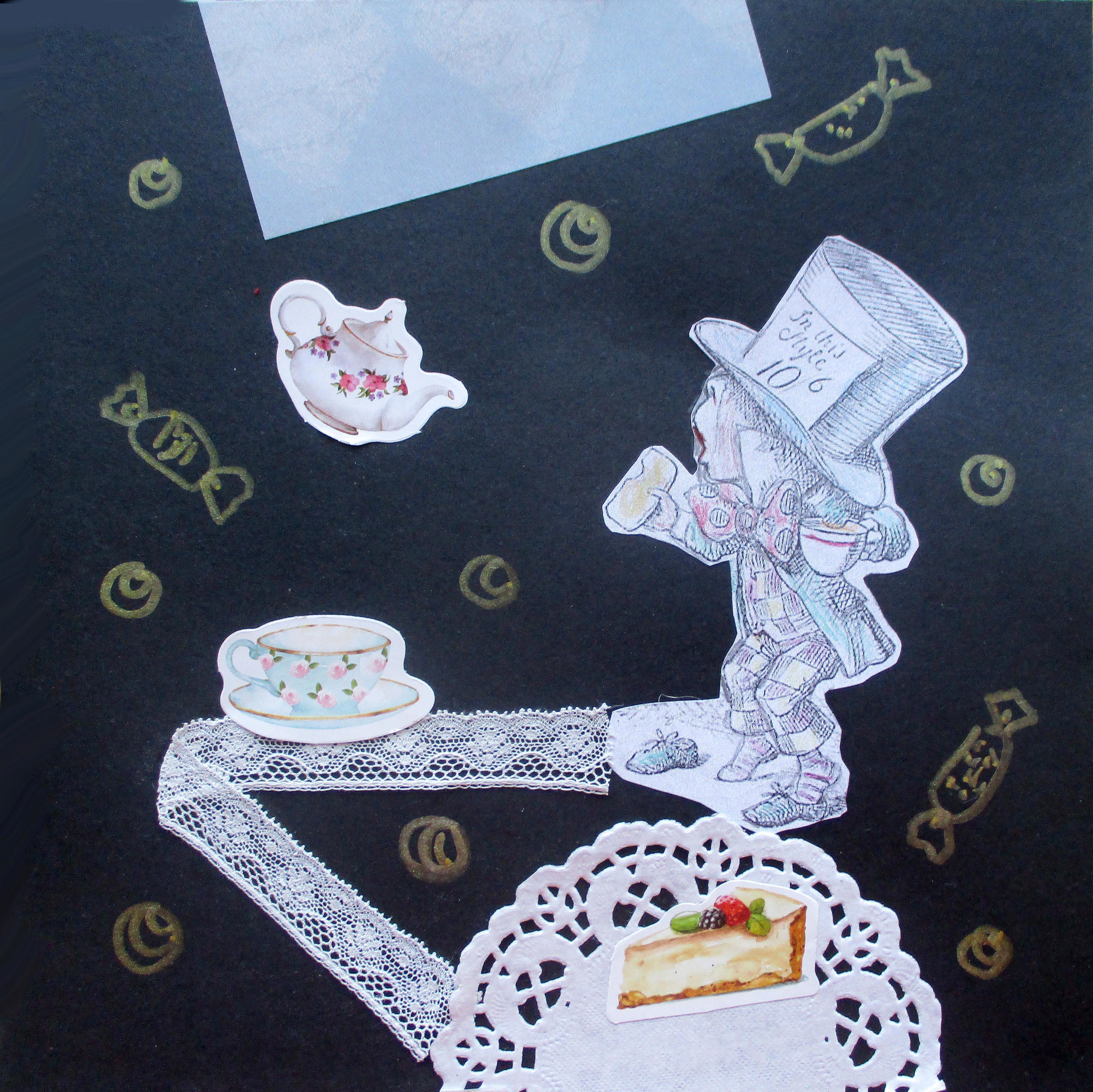 Автор: Елена МатеушТак назывался новый коллажный флешмоб Ирины Лакото в ВК. По названию ясно, что он посвящён Алисе Льюиса Кэрролла. В этот раз нужно было сделать не произвольную композицию (пусть и из одинакового для участниц набора материалов), как происходит обычно, а одну страничку из "бесконечной книги". Поэтому чтобы всё совпало ключевые моменты композиции были заранее заданы, чтобы потом они совпали и сложились в единый пазл в этой выставке.