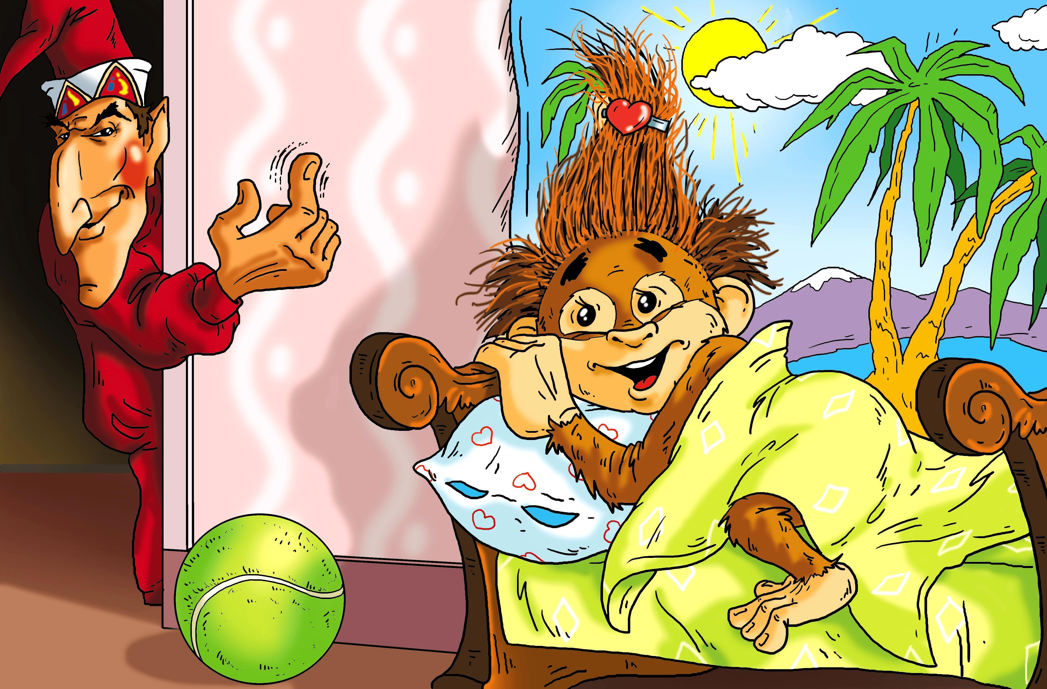 На мой взгляд Вере Зиновьевой очень хорошо удалось выразить в своей работе буйный нрав столь сложного персонажа, как Джоконя. Ведь во второй части серии – в книге «Ермошка Добродей и заколдованная кукла» именно эта симпатичная обезьянка стала причиной раздора и противостояния главных героев домовёнка и девочки Оли с опасными злыми волшебниками, живущими в старом сарае...