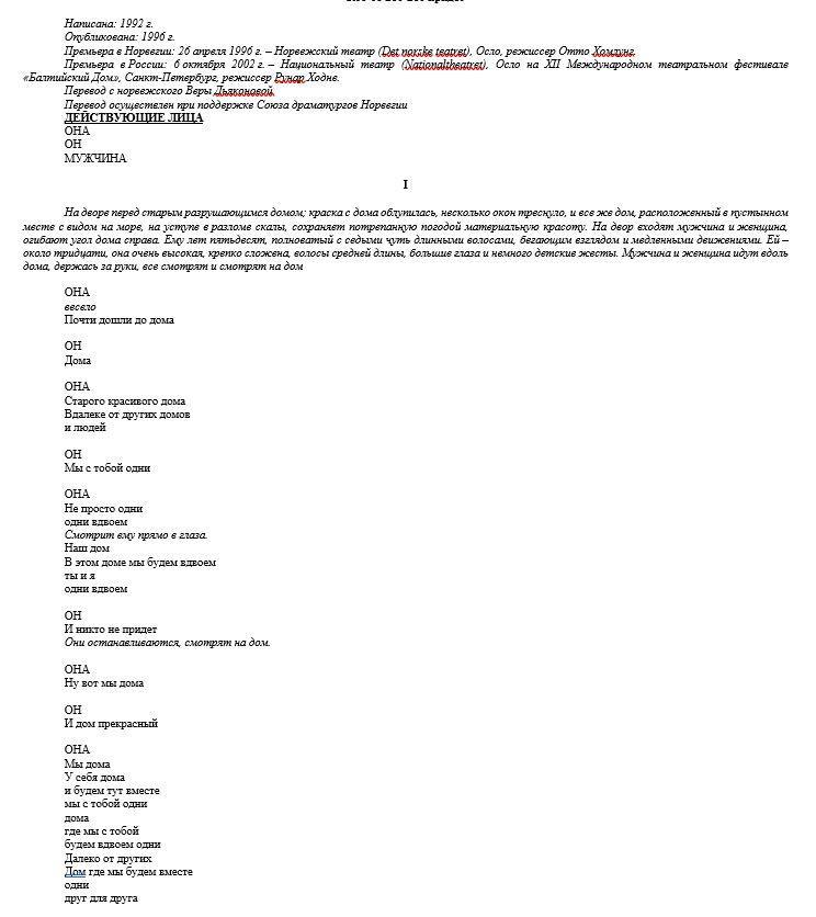 Я ТАК СТИХИ ПИСАЛ! Вот только это не стихи. Там вся пьеса такая. Я так понимаю у него все пьесы такие. Ибо во второй тоже самое. И бесконечные повторения, растягивания одной темы. Бляяяяяяя. Какая же это хуйня. В этих двух пьесах бесконечные диалоги аутистов. ХОТЯ, ДАЖЕ АУТИСТЫ ТАК НЕ ГОВОРЯТ!!! Но ощущение реально такое создается. И это единственное достоинство сего стиля текста. Но, ладно. Текст такой себе. Есть же сюжет. Может он хорош?