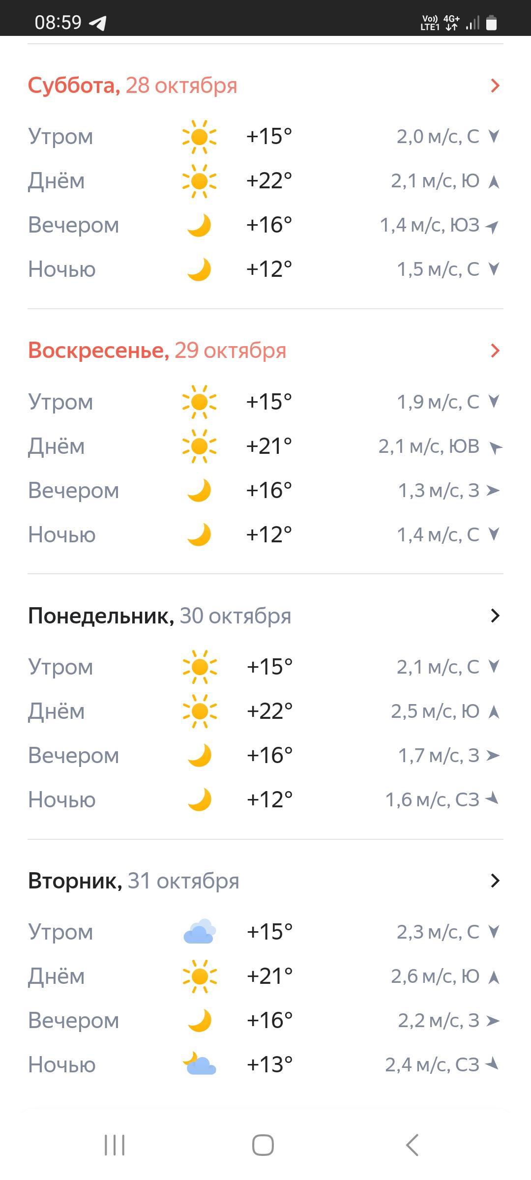 Автор: Сиротенко АндрейЯ всегда говорил, что если бы осенью не было бы дождей, а погода была бы 25+, я бы обожал это время года. На скриншоте температура чуть-чуть не дотягивает до заданных 25 градусов, но зато без дождей.