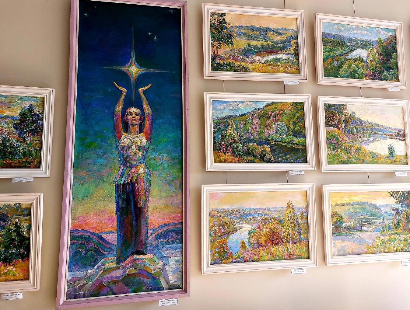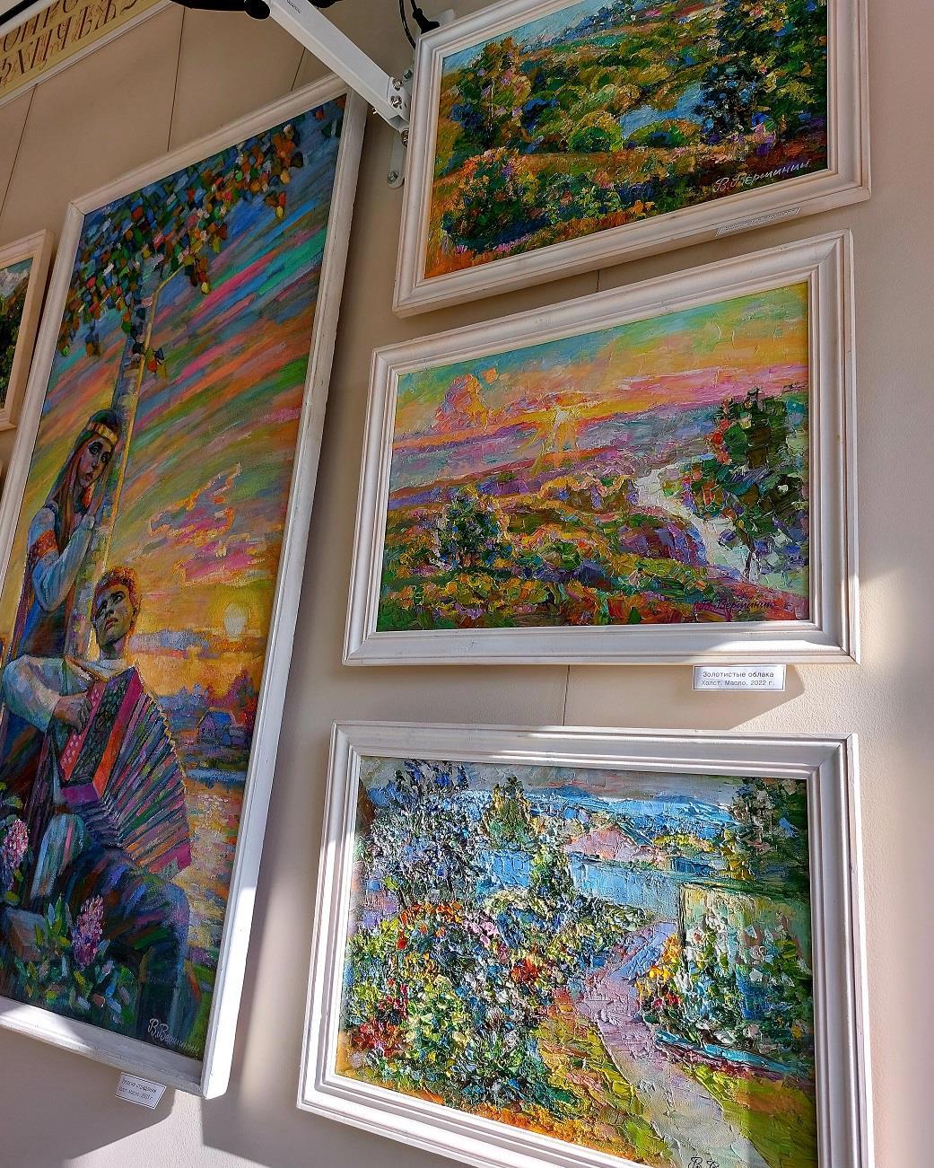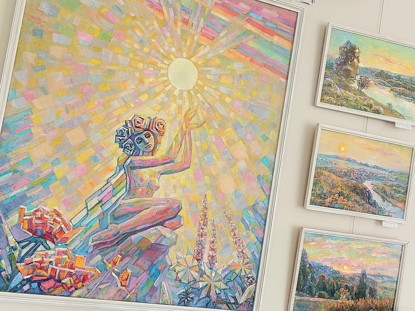 ...каждая картина словно маленькое солнышко освещает зал и согревает людей смотрящих на полотна...