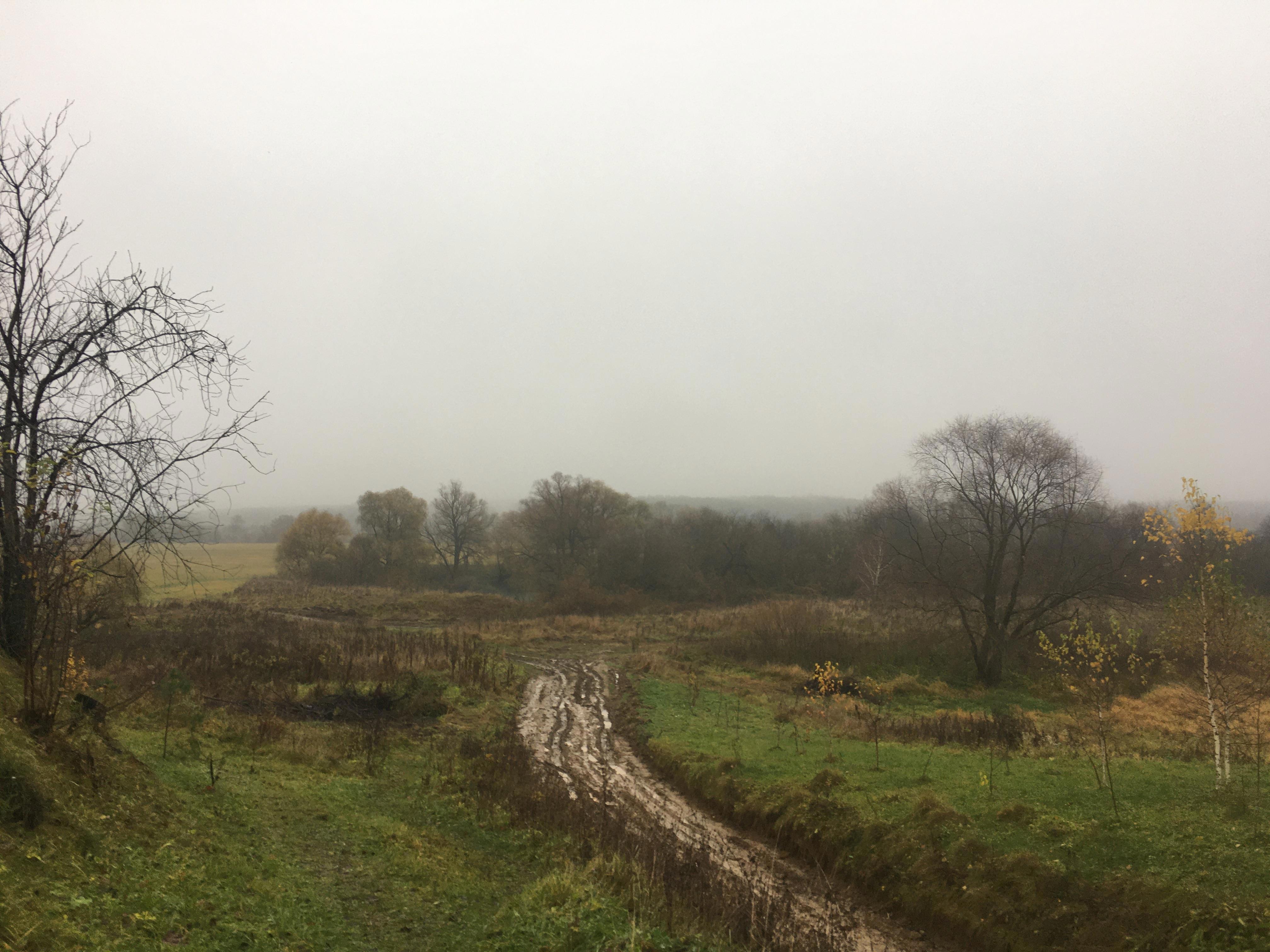 Деревня решила проводить меня густыми туманами, спрятав в них окрестные леса и городок. А дожди сделали дороги непроходимыми. Но тем не менее живописными)