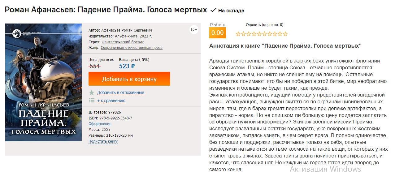 Автор: Роман АфанасьевНеделька выдалась так себе. Но зато к уикэнду подошли хорошие новости. В продажу поступил второй том моей космооперы «Падение Прайма» - в БУМАГЕ. Честно говоря, у меня и первого еще нет на руках. Надо что-то предпринять. А вот уже и второй. Раньше, конечно, было проще – зашел в магазин и купил. Сейчас все сложно. Тем не менее – встречайте том два. Насчет третьего не знаю, первые шли друг за другом, но третий тоже в планах, обложка то в издательстве есть.