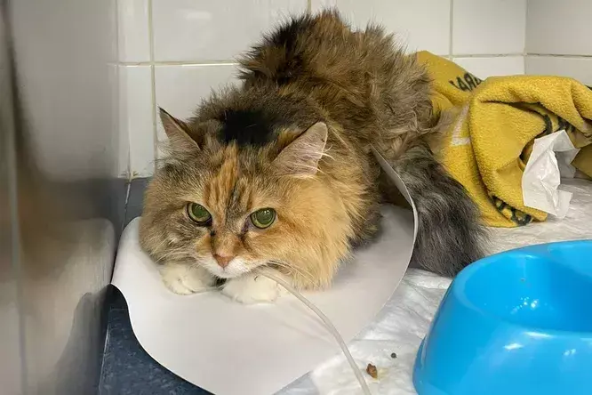 Коврик 14 лет. Она поступила в ветклинику на операцию по удалению опухоли молочной железы. «Как и у всех котиков, у меня есть свои особенности и причуды», — говорится в инструкции от лица питомицы.