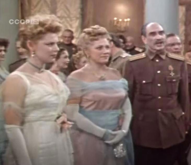 По поводу профессии блондинка не соврала: она действительно была актрисой. В описываемый период времени она снималась в фильме "Олеко Дундич" в роли Ирины Тумановой, дочери белого полковника. Вы можете увидеть её в этой картине между временными отметками 1 час 38 минут и 1 час 39 минут. На скриншоте ниже она слева:
