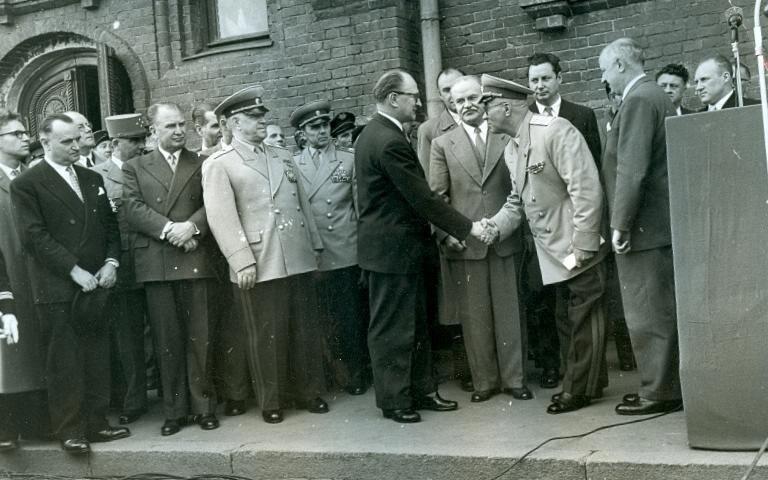 Есть ещё две фотографии, сделанных в середине мая 1956 года, когда в Москву прибыла официальная французская правительственная делегация во главе с Ги Альсидом Молле и Кристианом Пино. На этих снимках, сделанных на фоне бывшего дома купца Игумнова, Морис Дежан стоит слева, через одного человека от Георгия Константиновича Жукова.