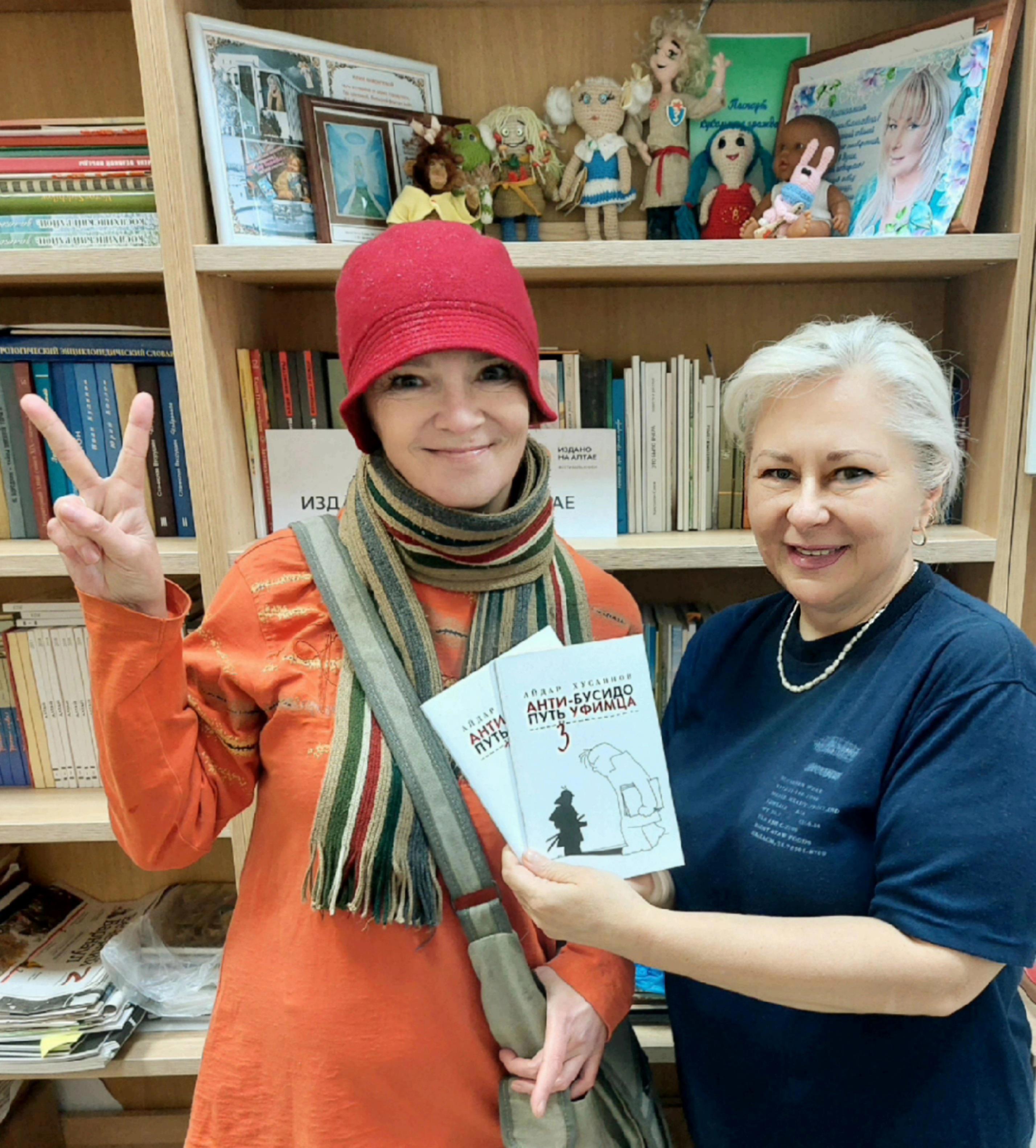Ну, наконец-то я смогла передать очаровательной алтайской поэтессе Наташе Николенковой подарочек от поэта из Уфы - Айдара Хусаинова - его новую книгу "Анти-Бусидо. Путь уфимца - 3"