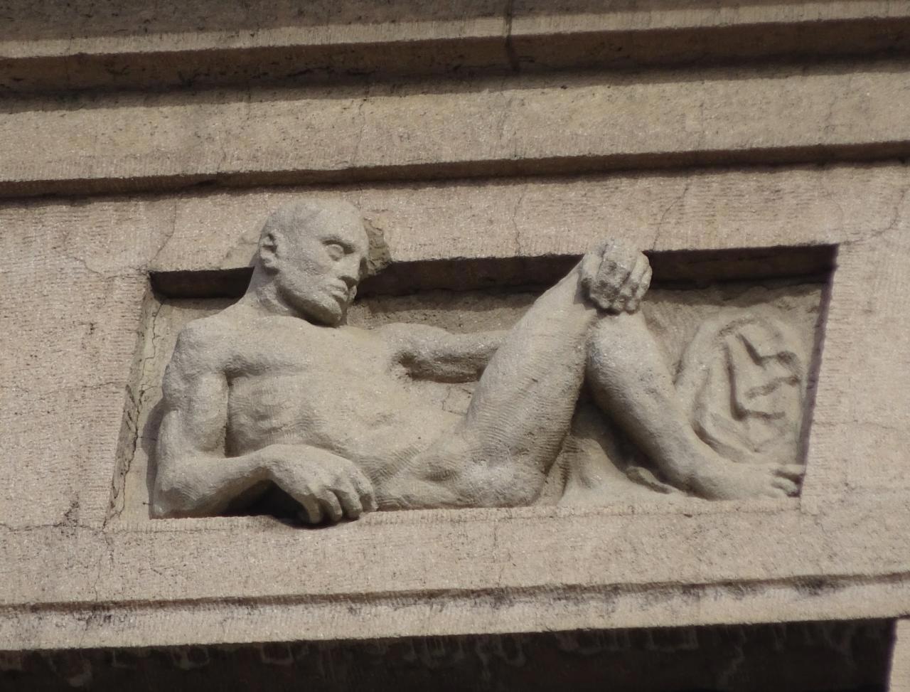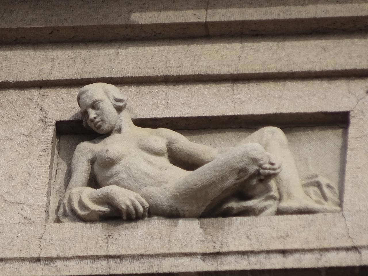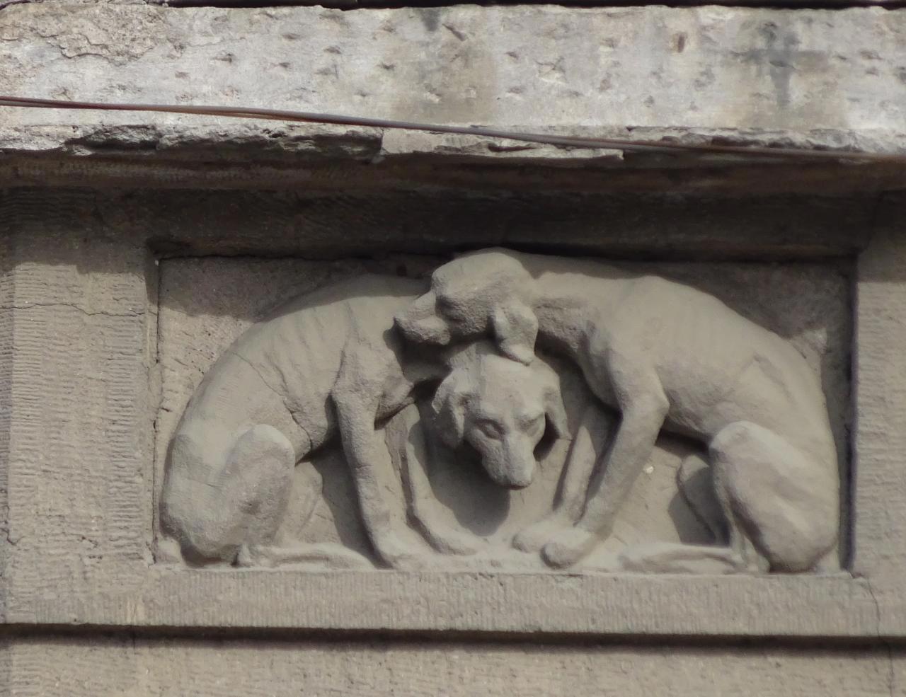 Декором этого здания занимался скульптор А. А. Рассадин, который также является автором фонтана-поилки для собак на территории Института экспериментальной медицины. Вот несколько фотографий, которые сделаны не мною: