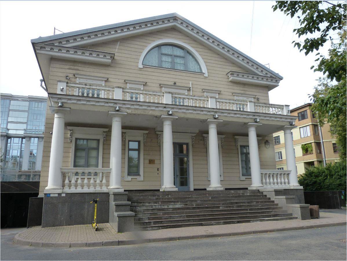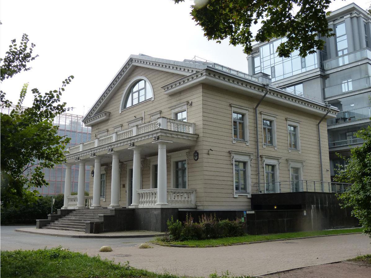 Это современная реплика дачи знаменитого архитектора Андрея Никифоровича Воронихина, которая стояла на данном месте в XIX веке. Здесь Воронихин в семьёй проводил летние месяцы с 1807 по 1813 годы. Есть версия, что оригинальный домик был собран из строительных лесов Казанского собора. Здание неоднократно перестраивалось различными архитекторами в последней четверти XIX века. Но в 1980 году этот особняк разобрали, посчитав, что старинное деревянное здание, у которого к тому моменту разобрали и портик, и террасу, портит вид правительственной трассы, по которой будут проезжать гости Московской Олимпиады.