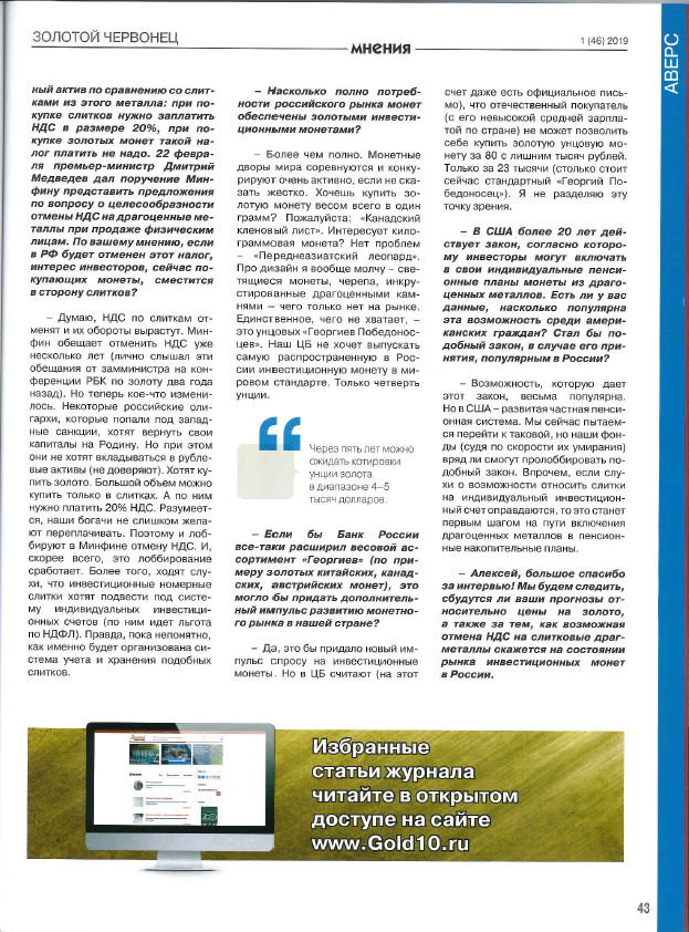 Интервью журналу "Золотой червонец" (книга "Металл, покоривший мир")