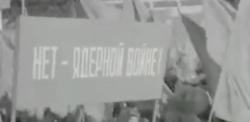 Потом мы дошли до пункта раздачи агитационных материалов. Нам выдали кучу разнообразной рекламной и праздничной продукции — бумажные цветы на длинных ручках, флаги СССР, плакаты на палках с лицами деятелей правительства и даже воздушные шарики. Двум блондинам-викингам из нашей общаги вручили здоровенный плакат "Нет атомной войне", толпа иностранных студентов перед нами вооружилась растяжками "Миру мир". Мне достался здоровенный лохматый цветок, которым, как меня предупредили, на Красной площади нужно будет махать.