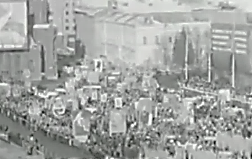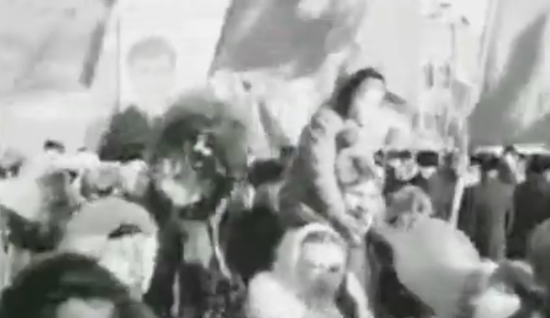 Гремела музыка, народ, в том числе совершенно трезвый, ликовал. Одна тетка, которой не досталось никакой агитации, проходя мимо здоровенной каменной будки, на которой было написано «Ленин», даже сорвала с себя песцовую шапку и начала отчаянно ею размахивать. Все кричали «Ура», диктор по громкоговорителю представлял входящие на площадь предприятия и вузы…