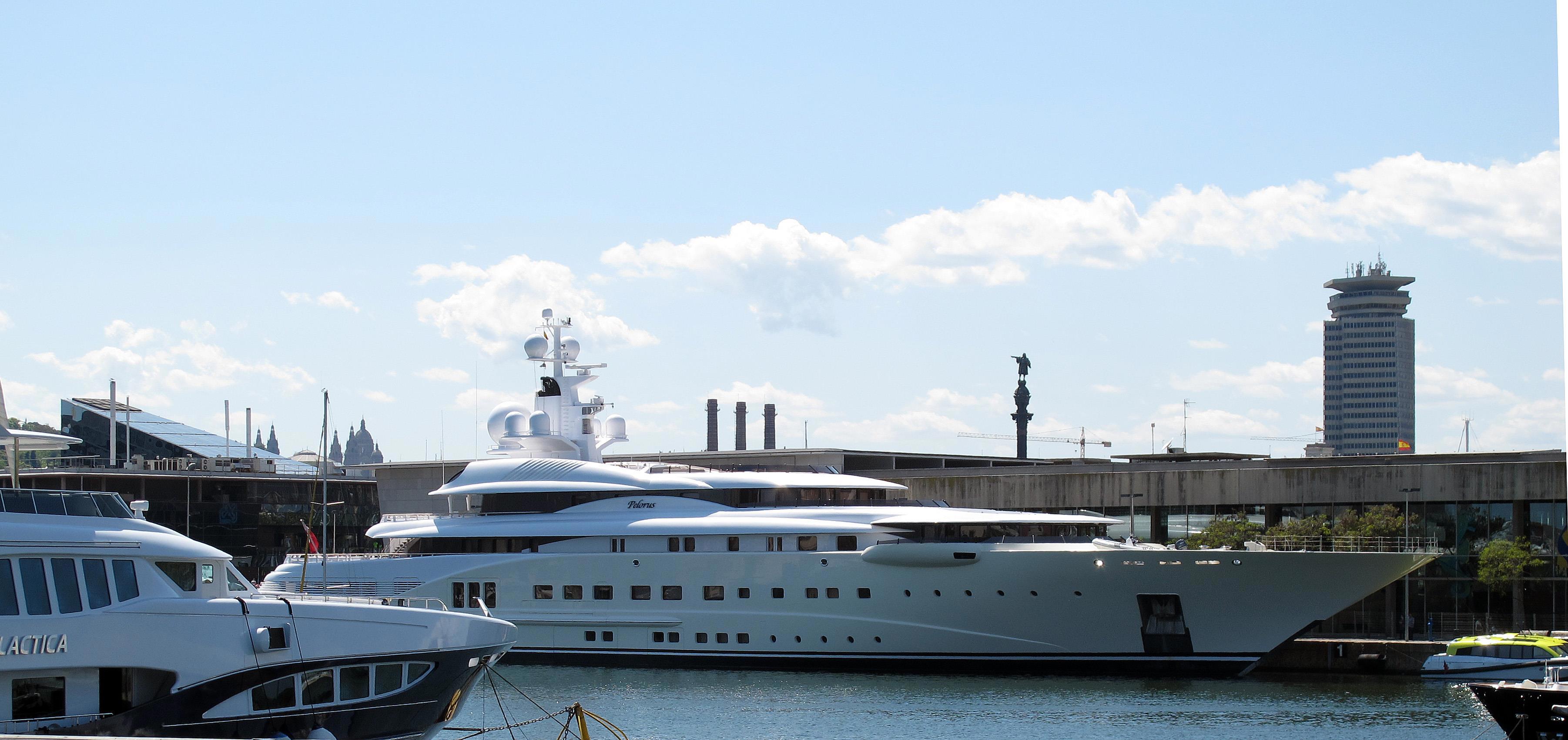 Тогдашняя яхта Абрамовича. "Пелорус", или "Пилорус", не знаю, как правильно. Пилорус - привратник желудка, пелорус - некий морской инструмент. Короче, оригинальное название