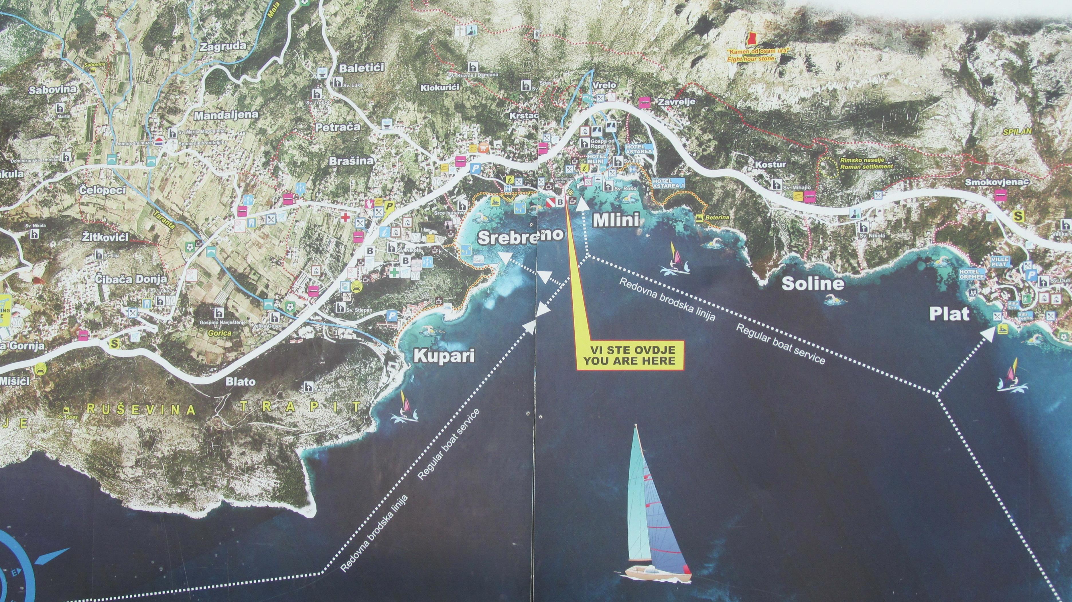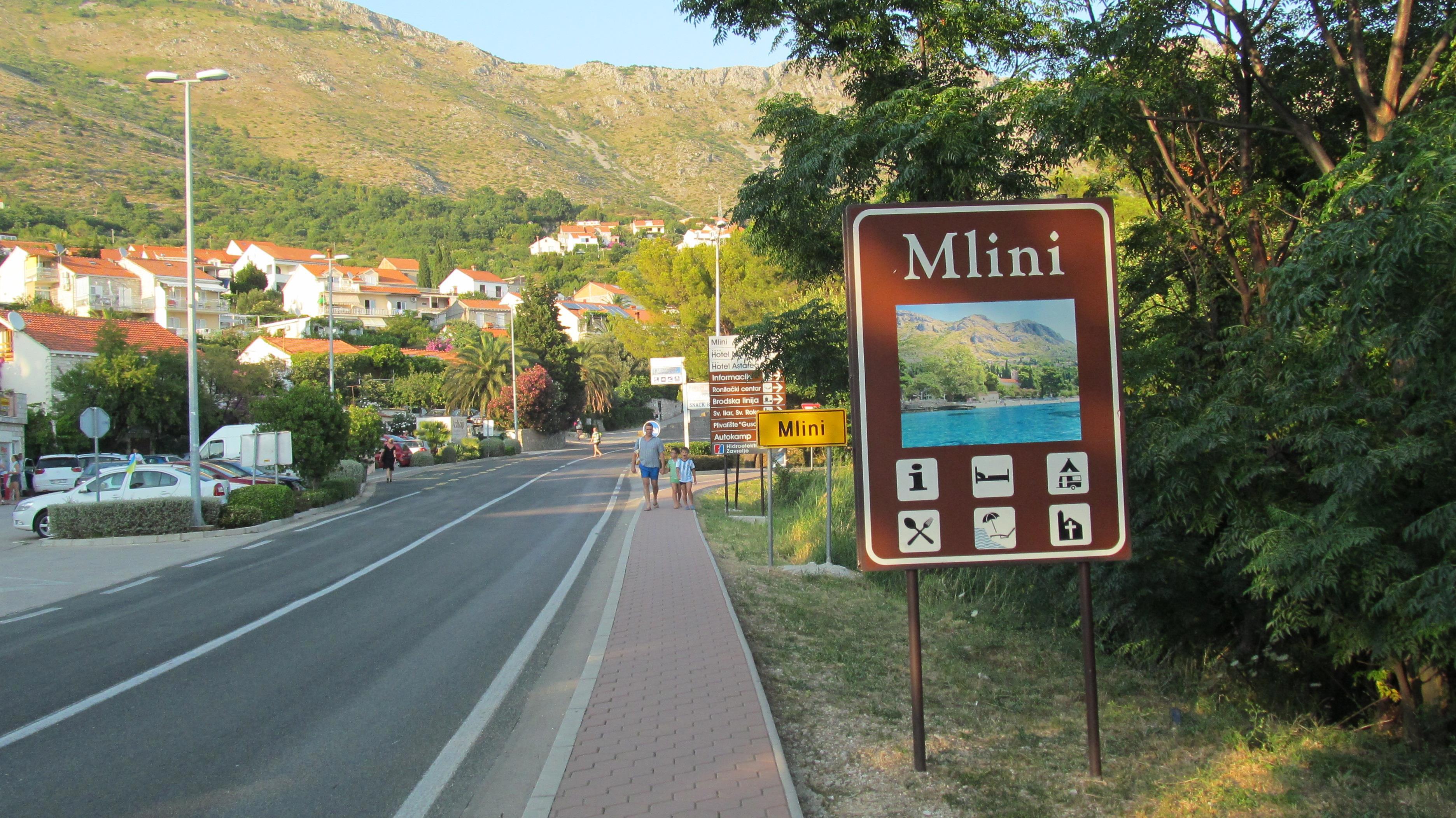 Едем. Еще дома спросили у хозяина квартиры, как добраться. Он отписал – мол, доедете по Ядранскому шоссе до остановки Жопа ( или как-то похоже) – и после сразу вылезайте… Ну, после так после. Мы и вылезли. Остановка – та, после Жопы – называлась Млини – как и наша деревня!