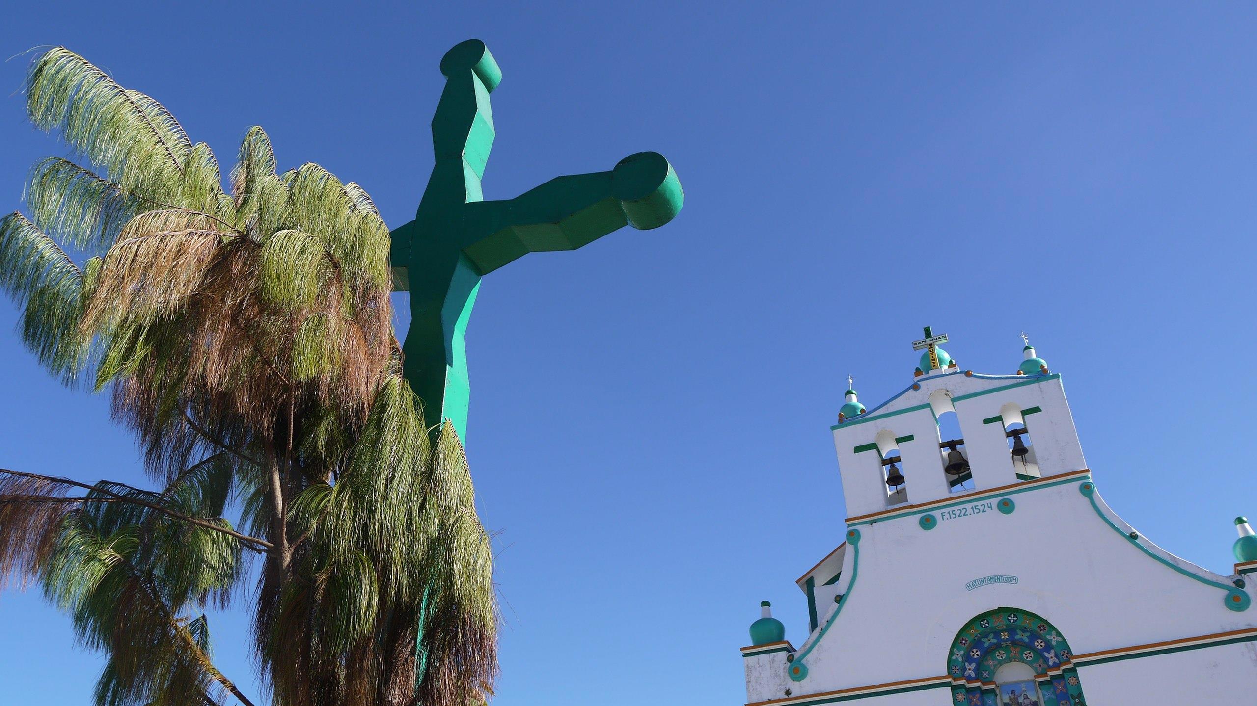 Церковь Сан Хуан де Чамулы. Это - деревня в горах штата Чьяпас. Индейцы майя приносят в этой церкви куриц в жертву христианским святым. Одну курицу принесли в жертву прямо при мне. Но снимать это было запрещено.