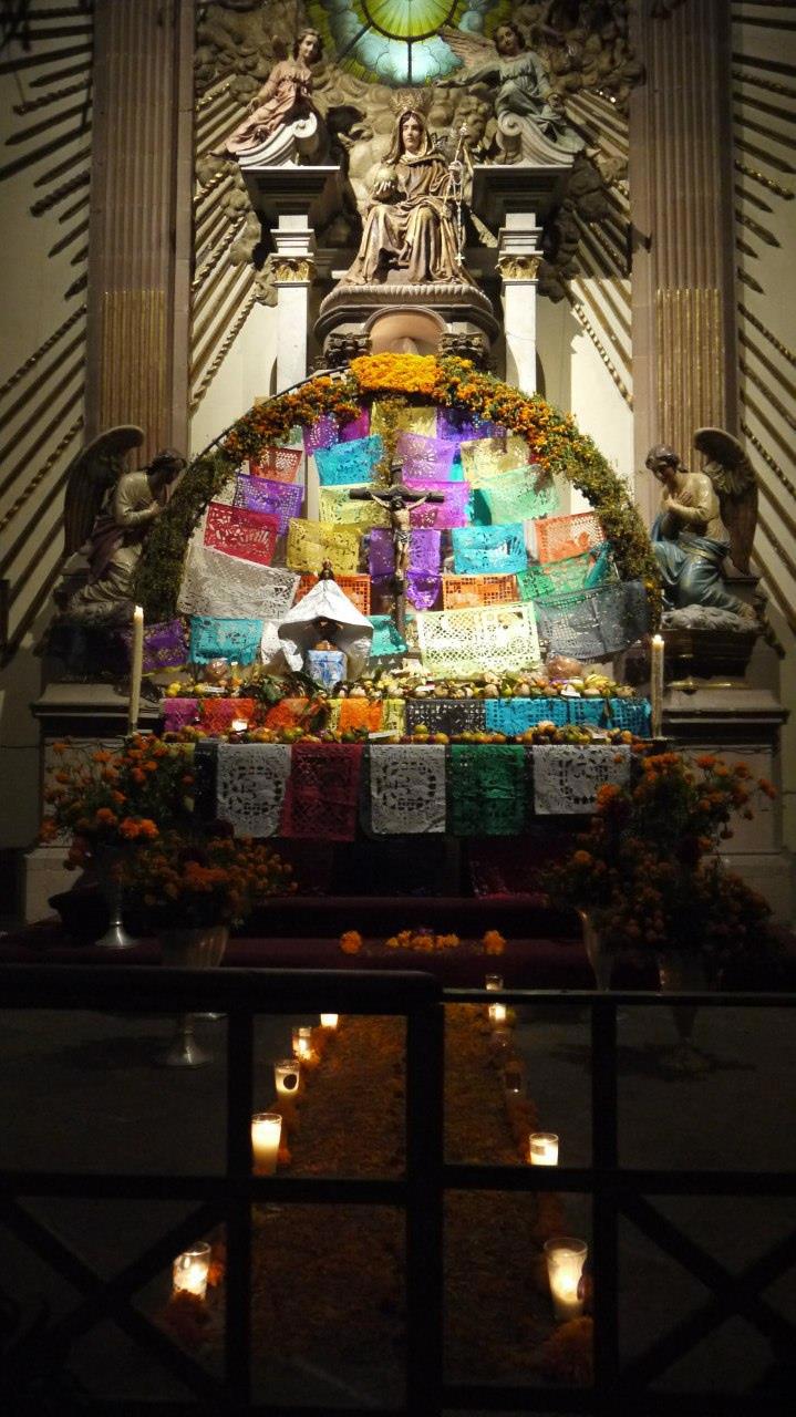 Оахака. Собор. Один из алтарей превращён в алтарь мёртвых.