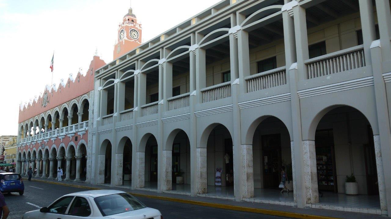 Мерида. Колоннады в колониальном стиле на главной площади города.
