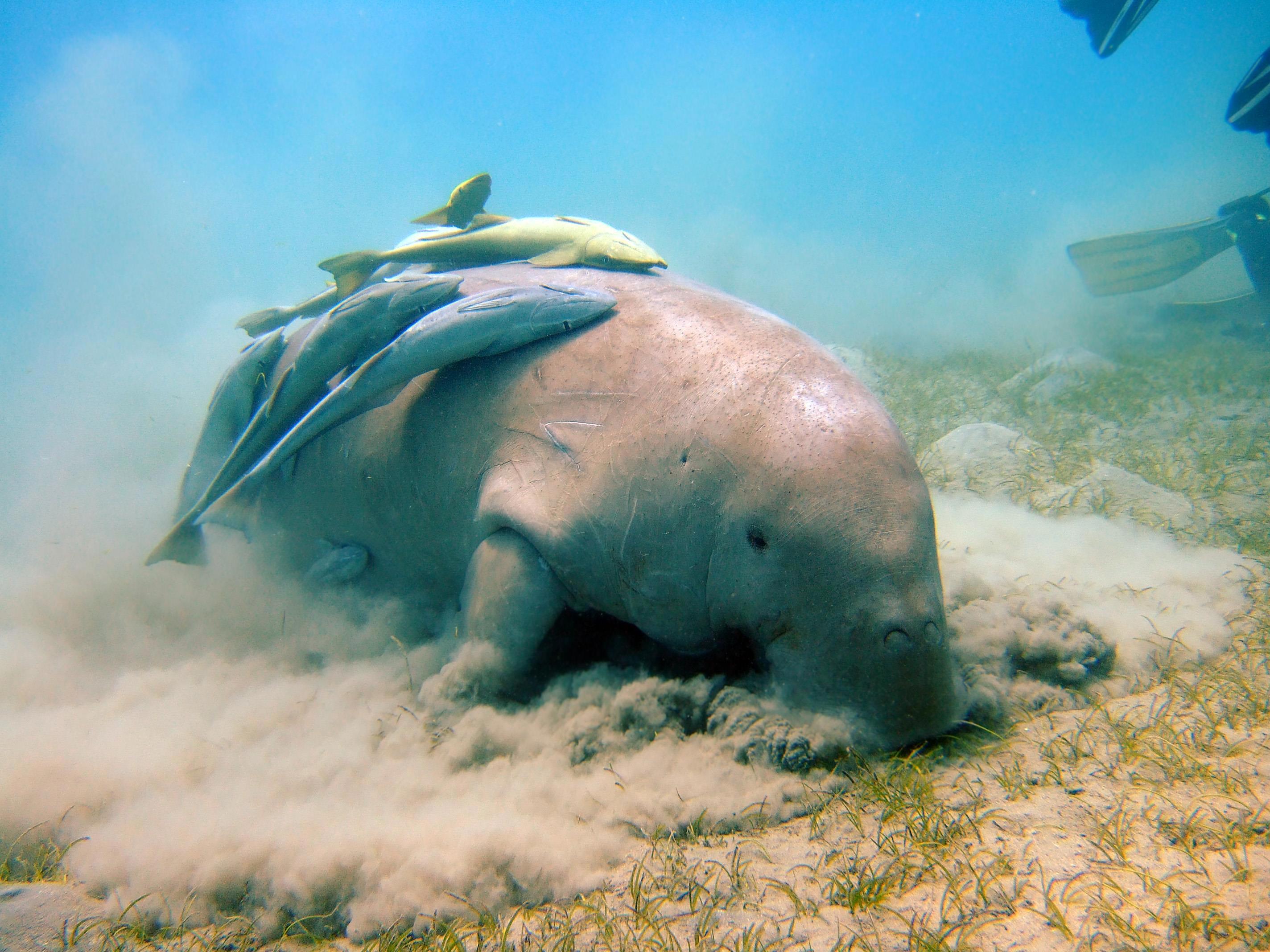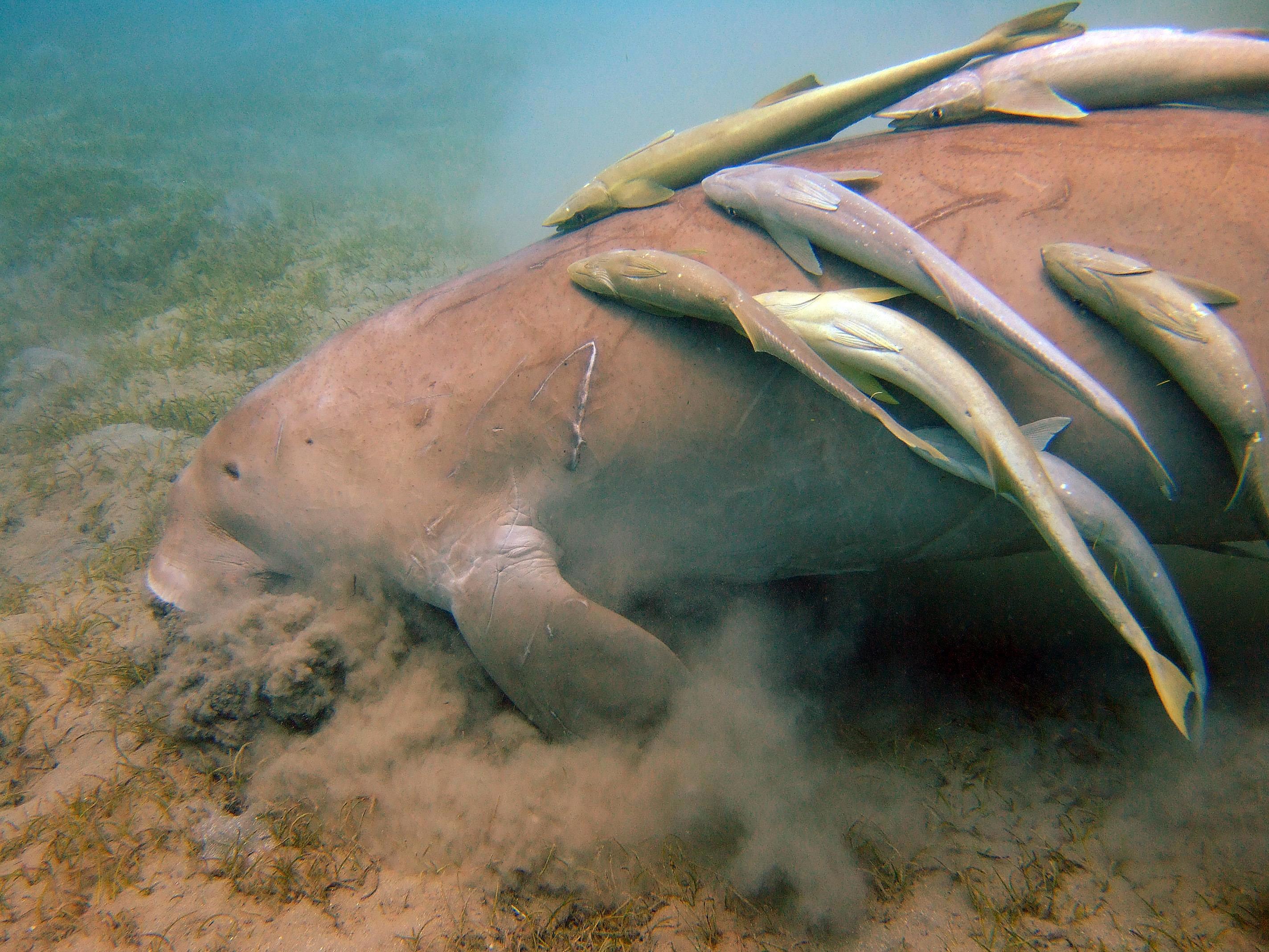 дюгонь (вернее, дюгониха) и прилипалы