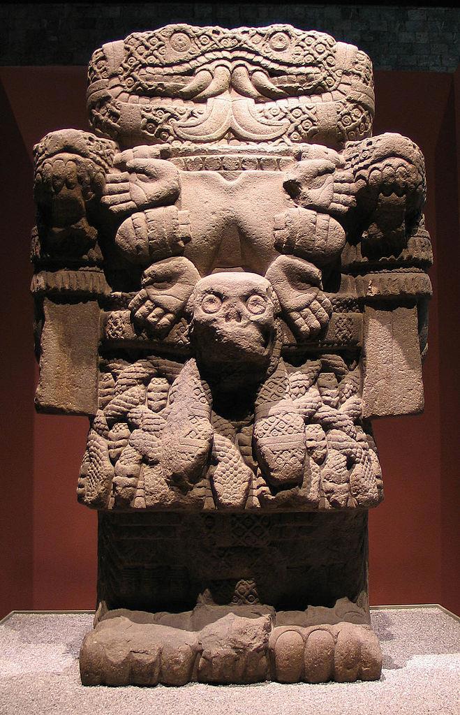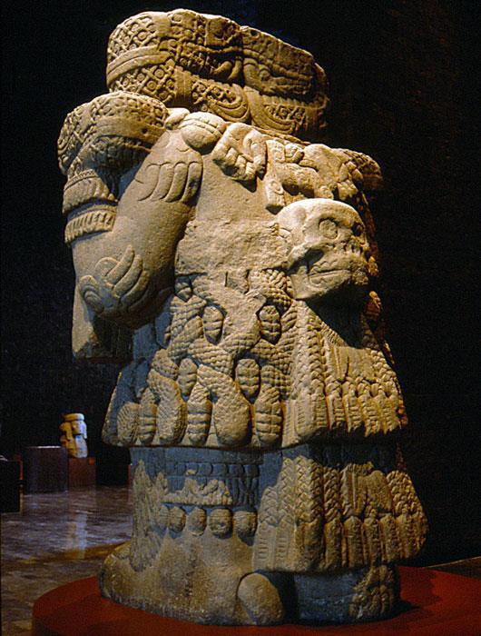 Шедевром ацтекской каменной скульптуры является захватывающее дух изображение богини Коатликуэ (Юбка из змей). Она - богиня земли, великая мать и, одновременно, божество и плодородия, и разрушения, объединяющее дуальность жизни и смерти в завораживающем и сокрушительном представлении. Статуя имеет 2,7 м в высоту. В настоящее время изваяние выставлено в Национальном музее антропологии в Мехико.