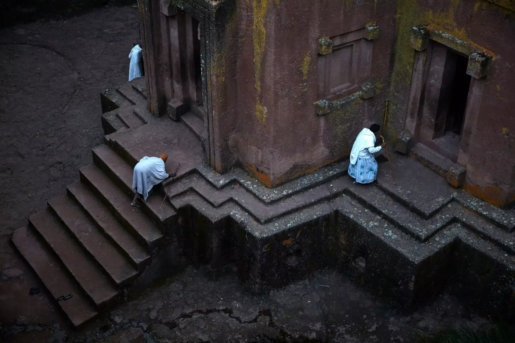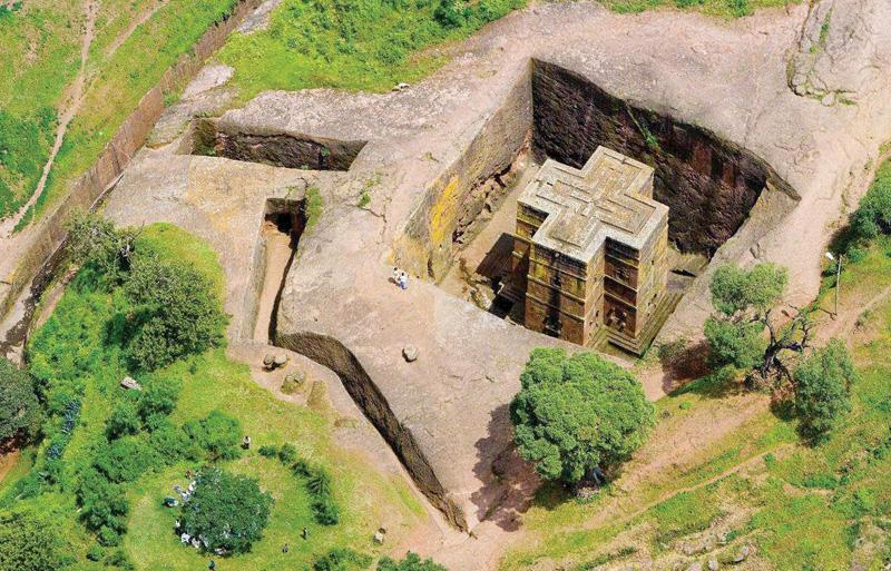 Но есть и третий способ, который придумали эфиопские христиане. Их страна расположена близко к экватору, поэтому люди, по возможности, старались селиться на Абиссинском нагорье, на высотах от 1500 до 2500 метров над уровнем моря, где не так жарко (температура колеблется от 16°C до 30°C). Понятно, что в этом случае города чаще всего строились на очень прочном скальном основании, уходящем вниз на сотни метров.