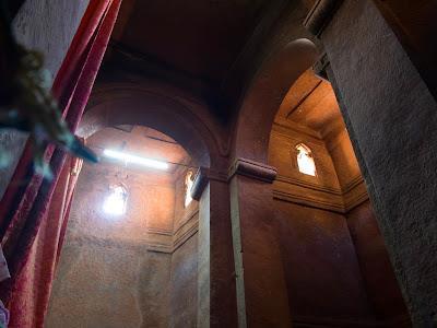 И вот кому-то из династии Загве, а может даже и их предшественникам, пришло в голову, что церкви можно строить не обязательно вверх, но и вниз. И в тогдашней столице страны, городе Роха, расположенном на высоте 2.5 км над уровнем моря, появились уникальные сооружения, высеченные из скал сверху вниз.