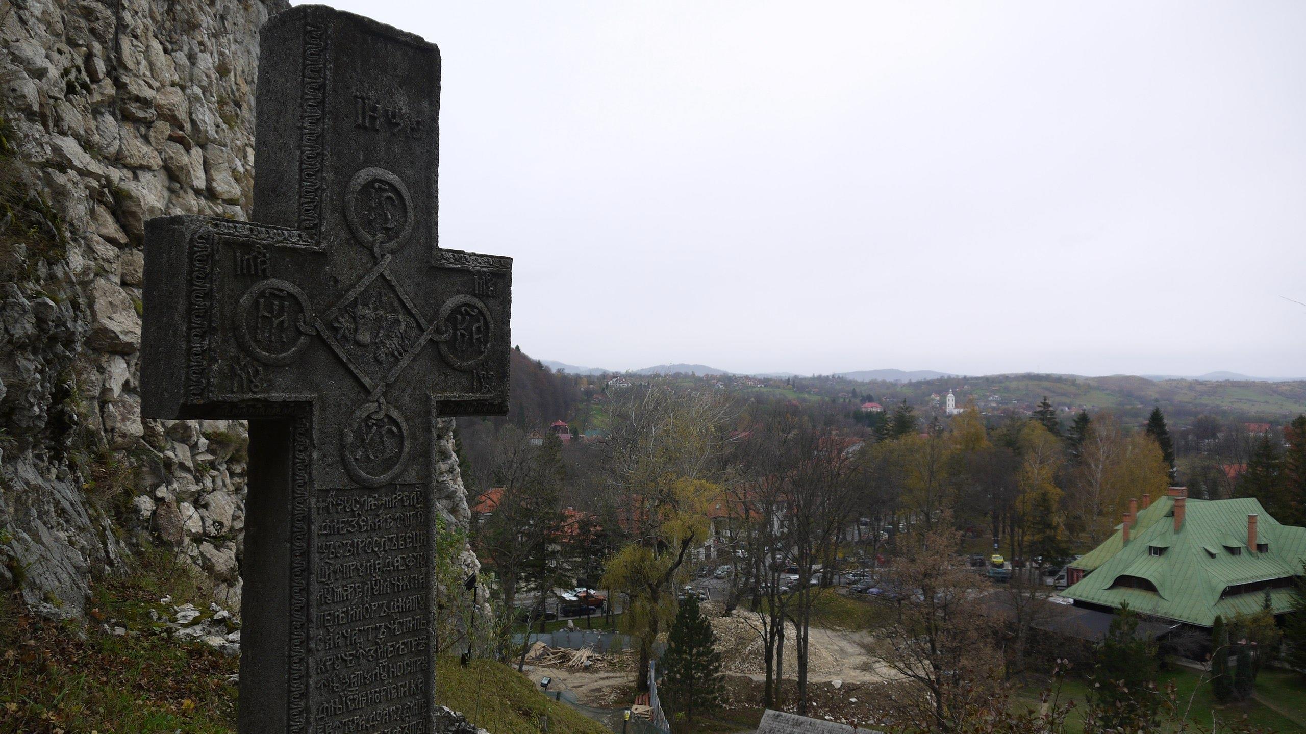 Древний каменный крест из коллекции королевы Марии. Она собирала в своём парке предметы искусства. Обратите внимание - надпись на церковнославянском. Этот язык воеводы Валахии использовали для составления документов, так как письменного румынского языка тогда не существовало.