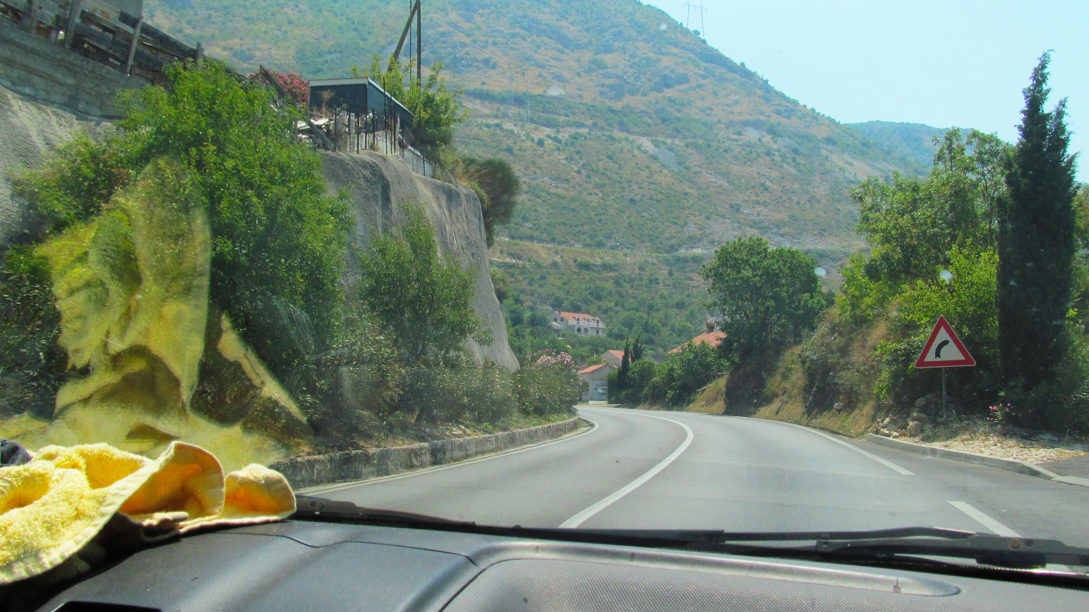 Едем по Ядранскому шоссе – оно одно тут. Слева – горы, справа – море. Еще кусты какие-то. И павильоны автобусных остановок… бетонные, с мозаикой и красными звездами! Снова привет из Югославии)