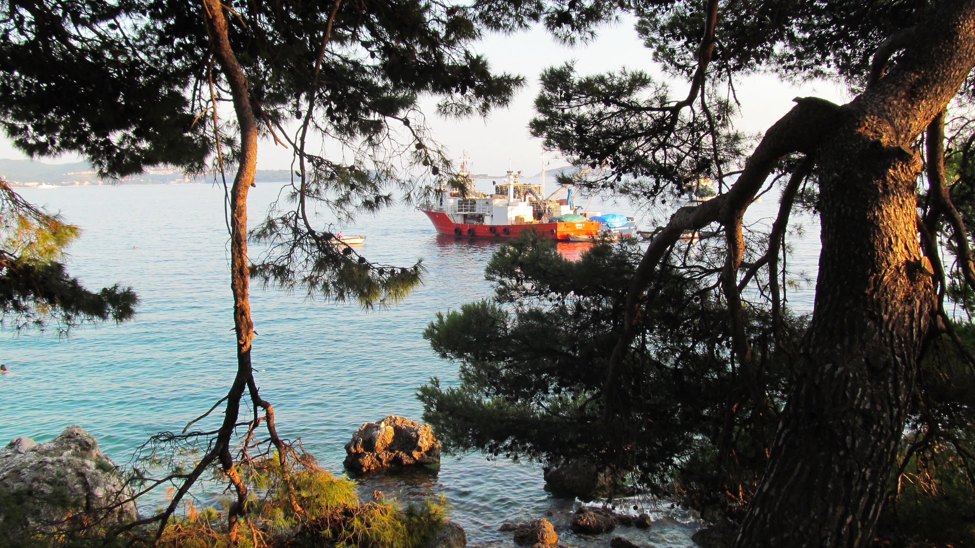 Катерок знакомый подошел к пирсу. Красная такая «подводная лодка», я его уже в Дубровнике видел. Девчонки с берега туда перебрались – хохочут. Думаю – может, мне на нем до Млини? Цена не понравилась – еще дороже, чем на автобусе. С деньгами тогда было туго – экономил на всем