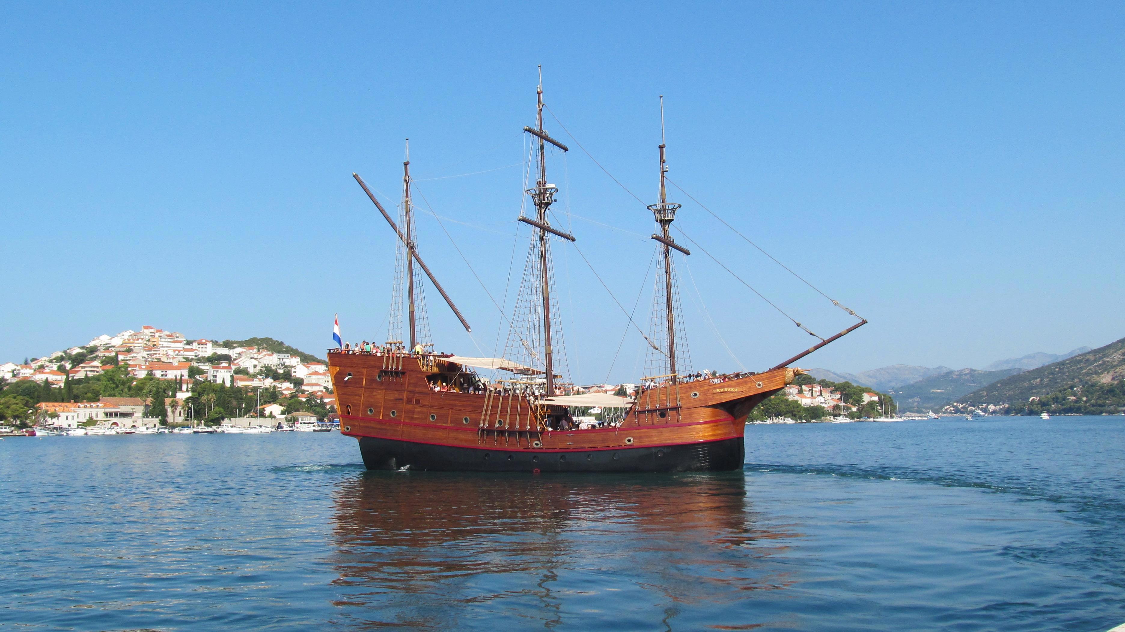 Поехал в старый город. В порт – где кораблики… В Млини один такой как раз скоро уже отходил… Такое вот пластиково-пенопластовое судно!