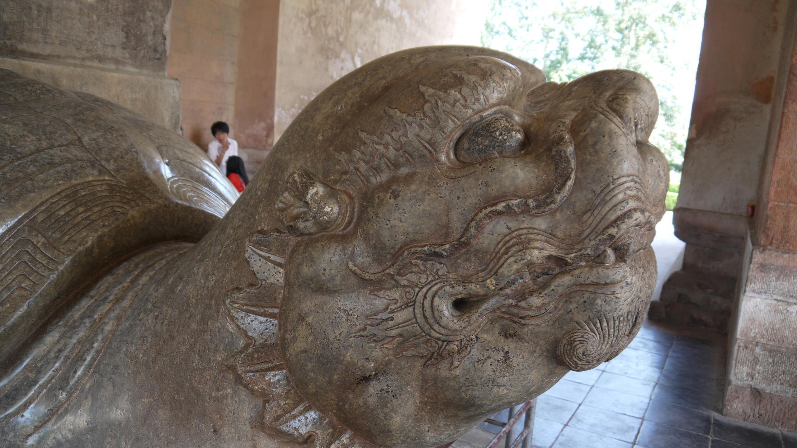 Вход на Аллею Духов находится в этом павильоне. Внутри на изваянии сына Дракона Биси находится стела.