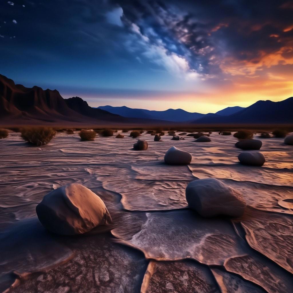 Камни   весом более 100 килограмм под действием непонятной силы передвигаются по его дну,  оставляя за собой четкие полосы. Никто не может точно дать ответ на вопрос,  каким образом происходит перемещение, ведь никому не удалось увидеть камни в   движении. Существует множество различных теорий на этот счет. И первое, что   приходит в голову: камни передвигают люди или звери. Но … дно   высохшего озера - рыхлое, и любой отпечаток ноги или лапы сразу же остался бы на его   поверхности. А рядом с камнями не было найдено никаких следов. Еще некоторые   люди сообщают, что иногда поверхность озера покрывается тонким слоем льда.   Камни вмерзают в лед, а потом катятся по нему, подталкиваемые ветром. Про ветер есть еще одна версия. Может быть, это именно он перекатывает камни без  участия льда. Ведь траектория многих камней параллельна направлению, в  котором он дует. Но камни-то весят 100 килограмм… Какой же силы должен быть  ветер? Есть еще одна гипотеза, к которой склоняются ученые, исследующие  это уникальное явление. Условием движения камней «Долины смерти» является  наличие воды, жаркое солнце и создание под камнем давления водяного пара. В  этом случае из-под камня вырывается реактивная паровая струя, камень отрывается  от поверхности и передвигается. Несмотря на сухой климат, в почве Долины Смерти   есть вода. Утром под камнем собирается конденсат. А с восходом солнца, камень  разогревается, и вода превращается в водяной пар. При условии оптимального соотношения:  веса камня, давления под камнем, герметичности почвы и, собственно, камня,   последний отрывается от поверхности … как бы подпрыгивает. Так и происходит  движение.